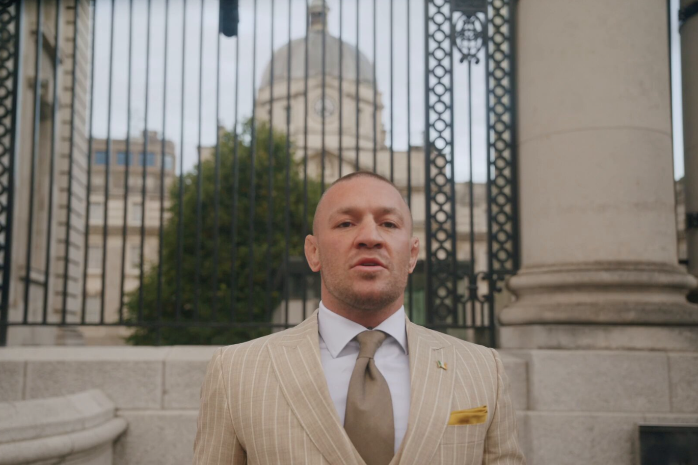 Conor McGregor in a video announcing his continued pursuit of the Irish presidency, posted on social media on 4/9. Source: Social Media