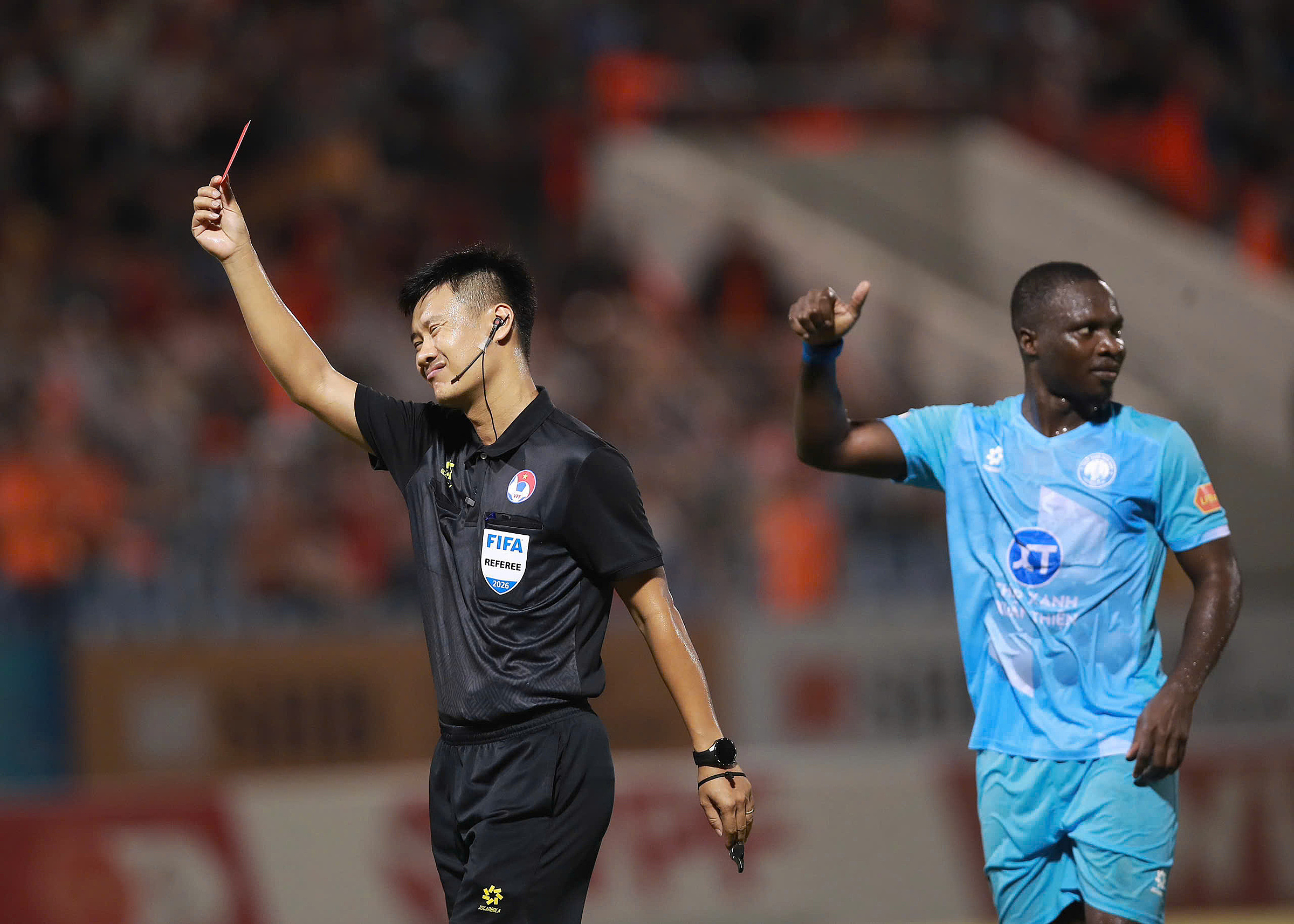 Once the play concluded, referee Nguyen Manh Hai issued a direct red card, dismissing the Da Nang goalkeeper. Van Bieu appeared to understand his infringement, offering no protest as teammates approached to console him.