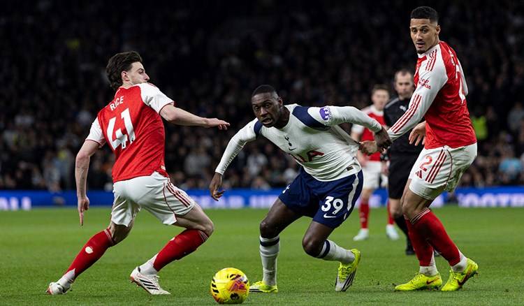 Kolo Muani (center) bypasses Declan Rice (left) during Tottenham's 1-4 loss to Arsenal in round 27 of the Premier League on 22/2. Photo: Tottenham |
