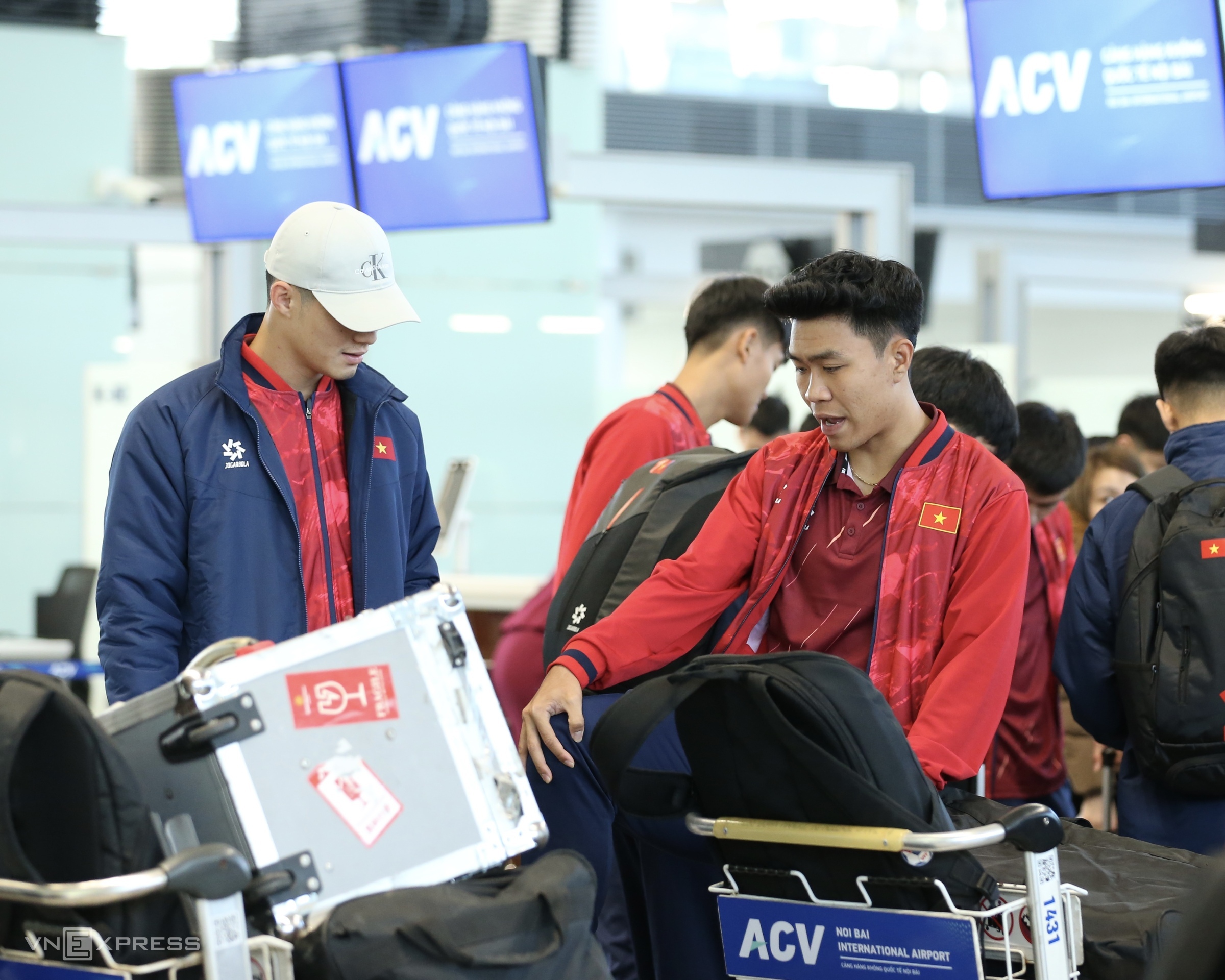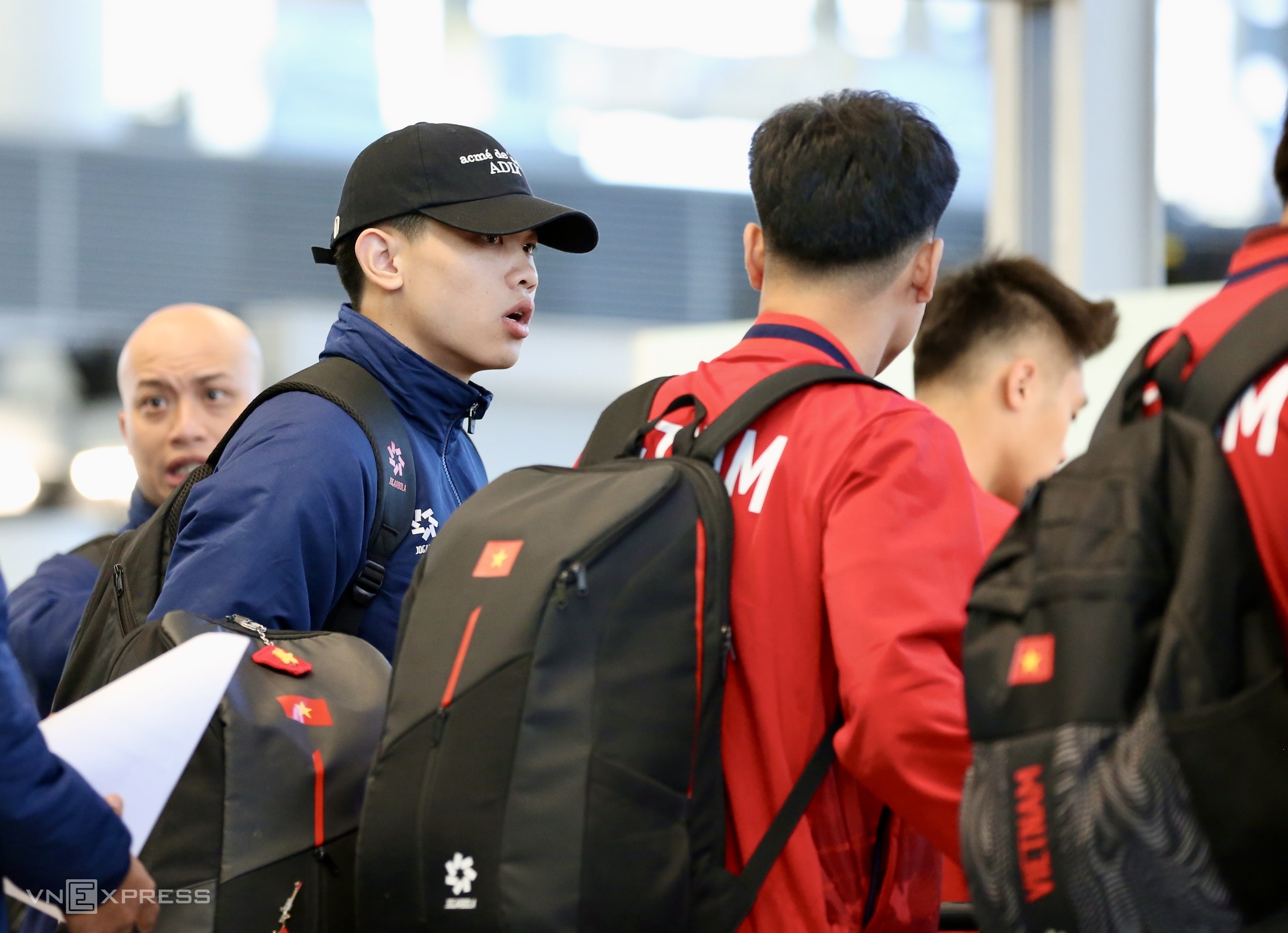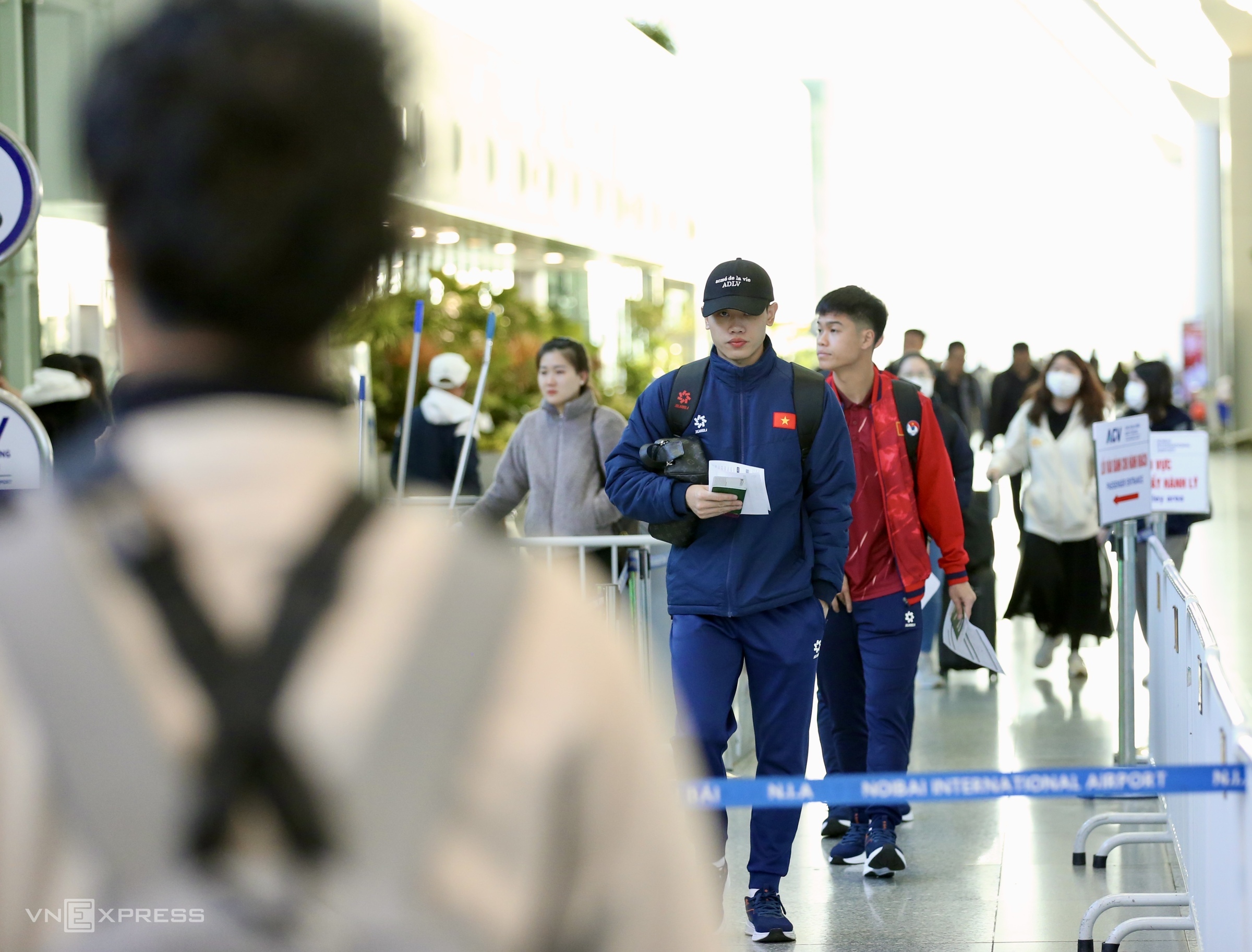 Team members arrived at Noi Bai Airport from 7h, many still looking sleepy.