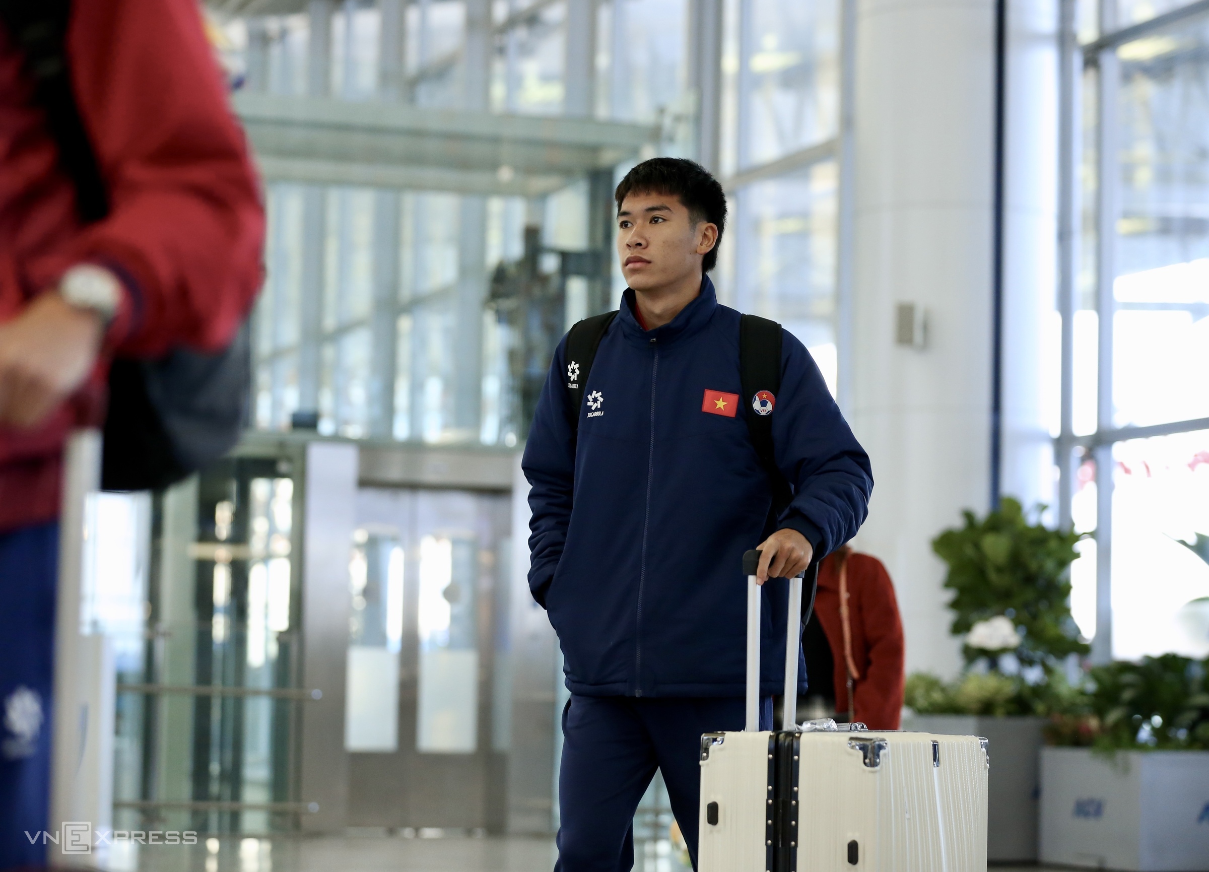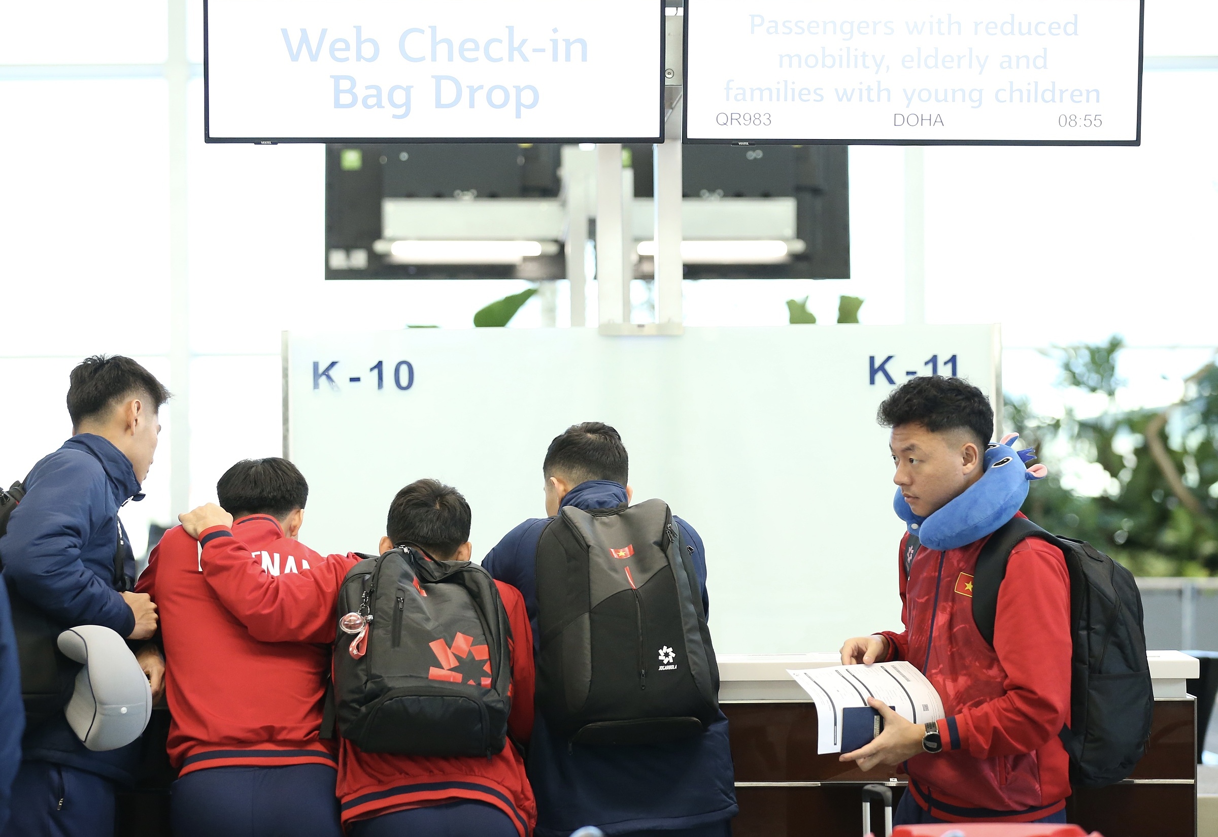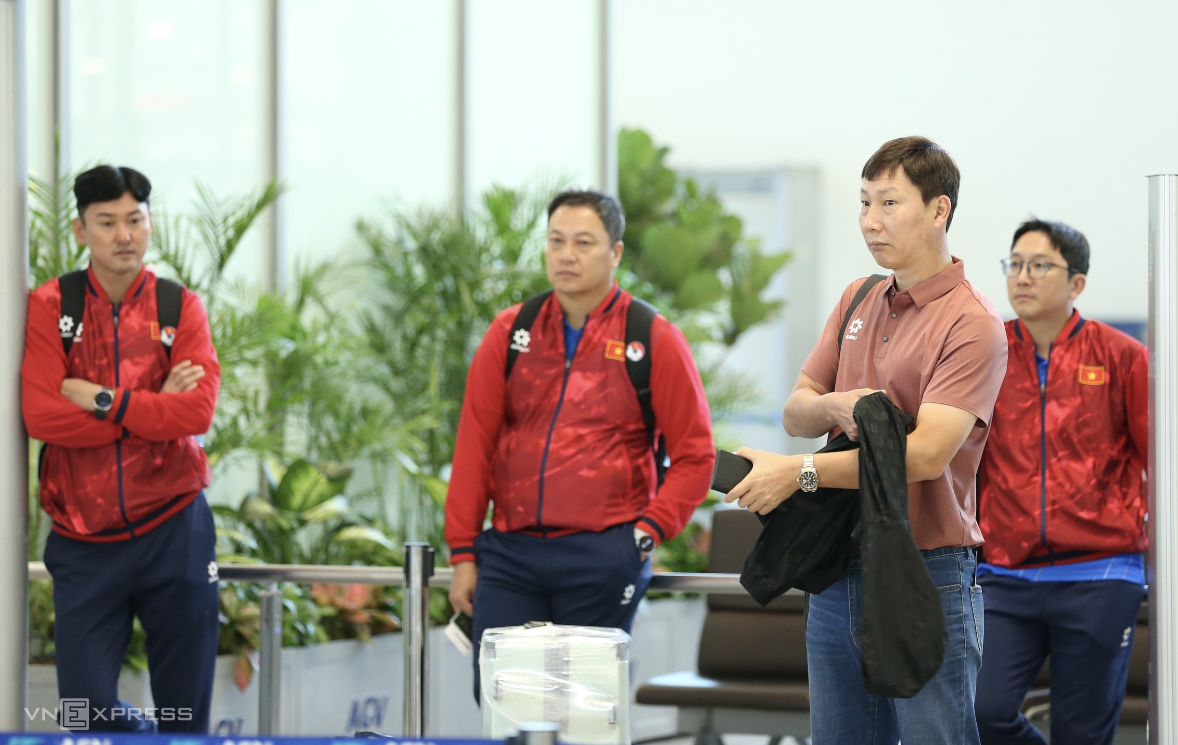 Team members arrived at Noi Bai Airport from 7h, many still looking sleepy.