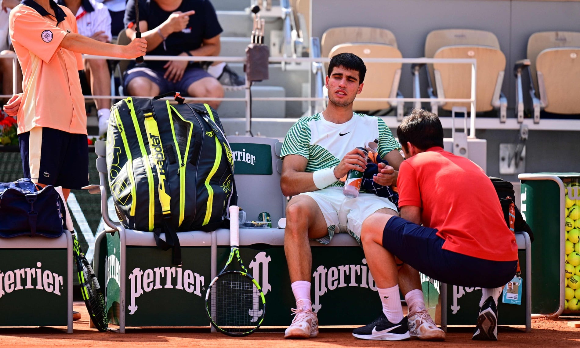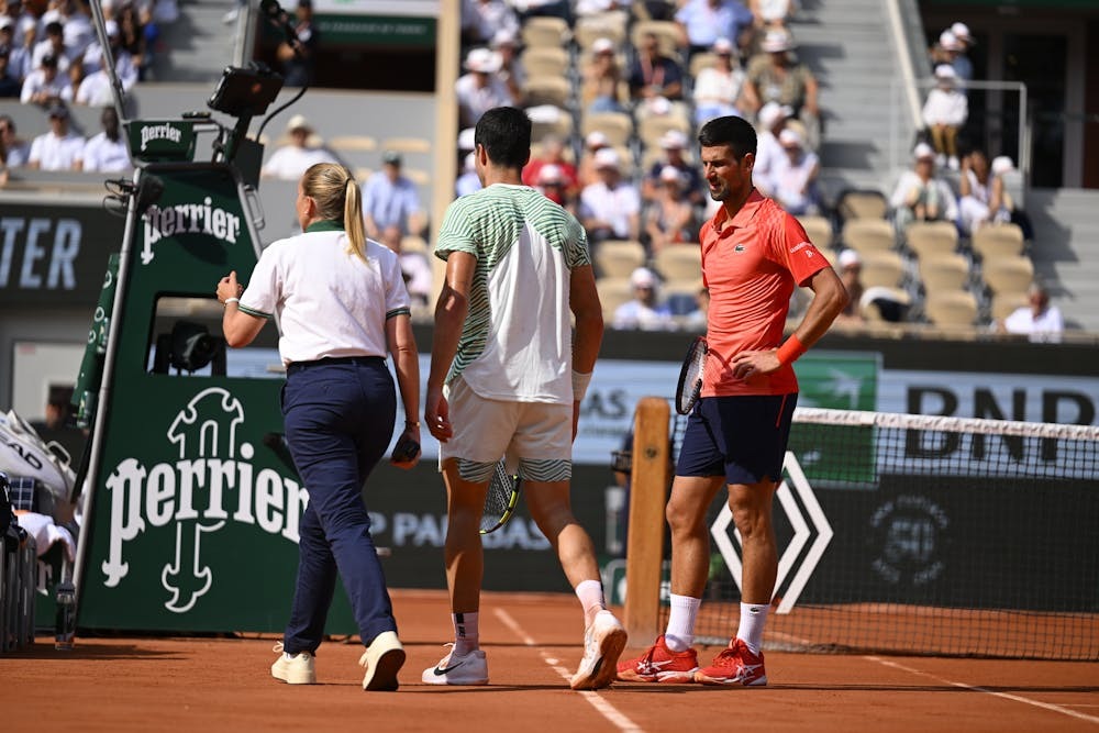 The Roland Garros clay court witnessed the first match between Alcaraz and Djokovic at a Grand Slam. The Spaniard came back after losing the first set, but towards the end of the second set, he experienced pain in his right leg and hand. With the score at 1-1 in the third set, Alcaraz required the assistance of a physiotherapist, which led to him losing his serve in the next game due to regulations. He suffered cramps in his right hand and quadriceps.