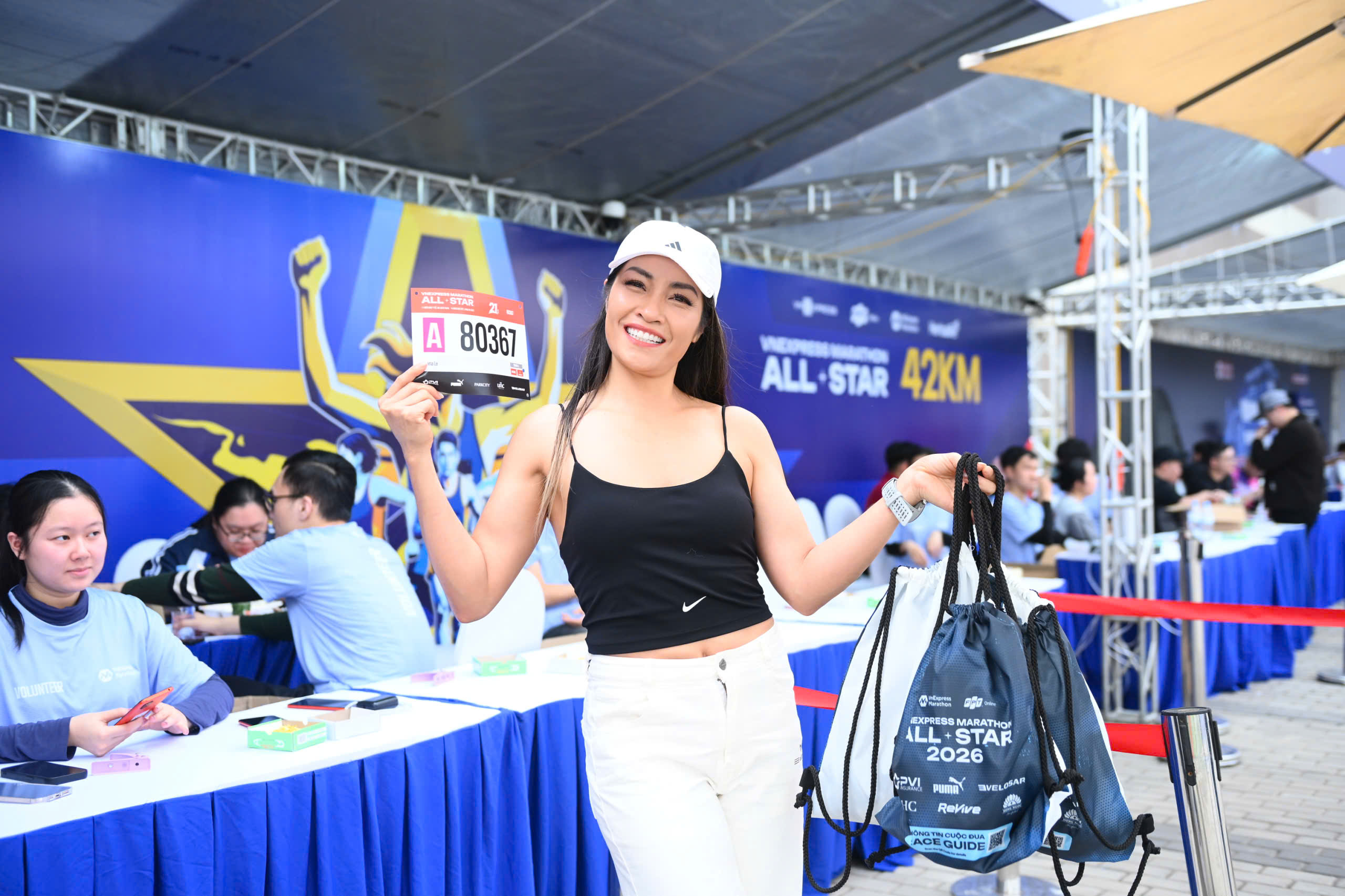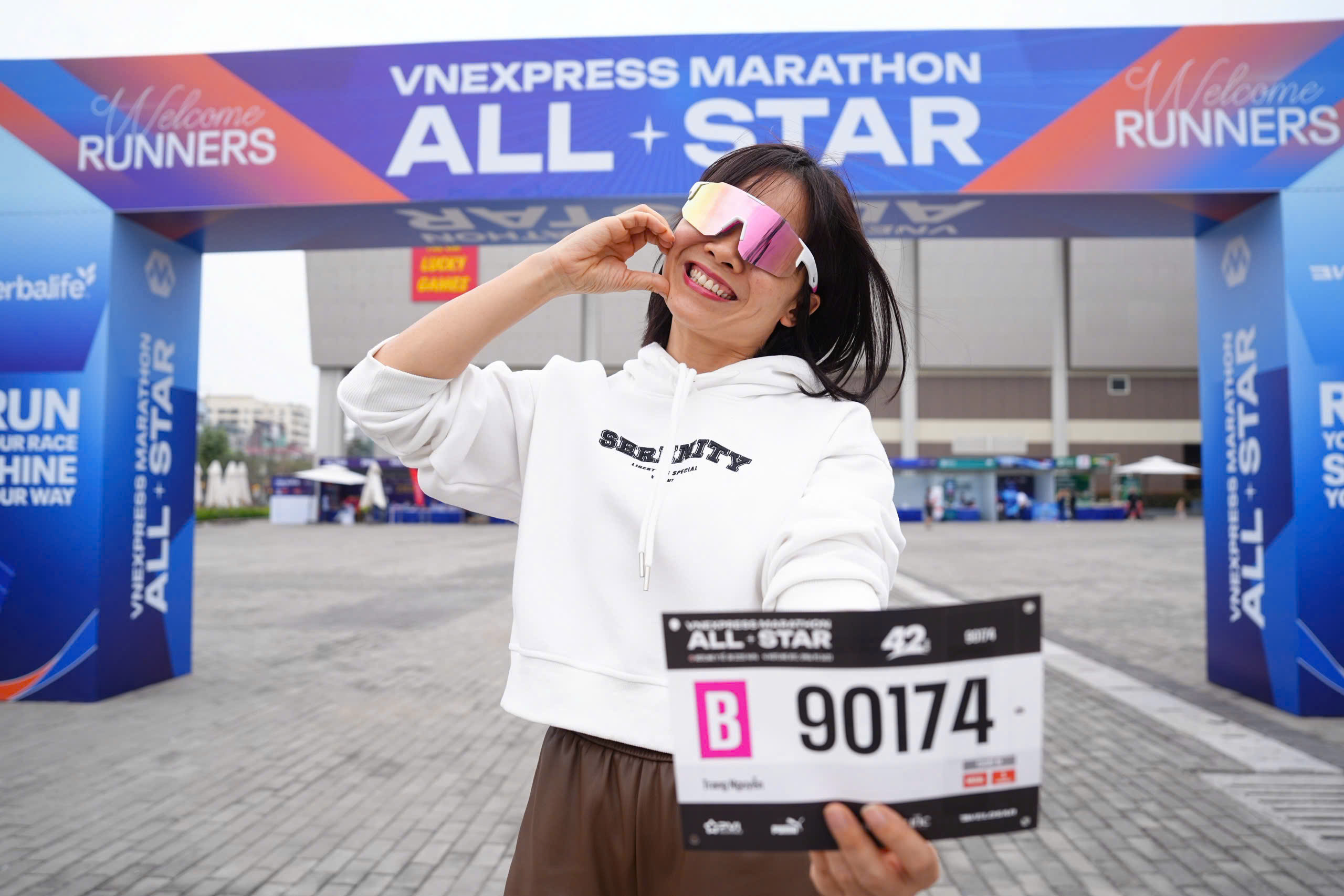 Elite athletes Hong Le, Doan Thu Hang, Huynh Anh Khoi, and others received their bibs together. In last year's All-Star season, Hong Le made an impression by winning the women's 42km title with a time of 2 hours 44 minutes 45 seconds, two minutes faster than her previous best. |