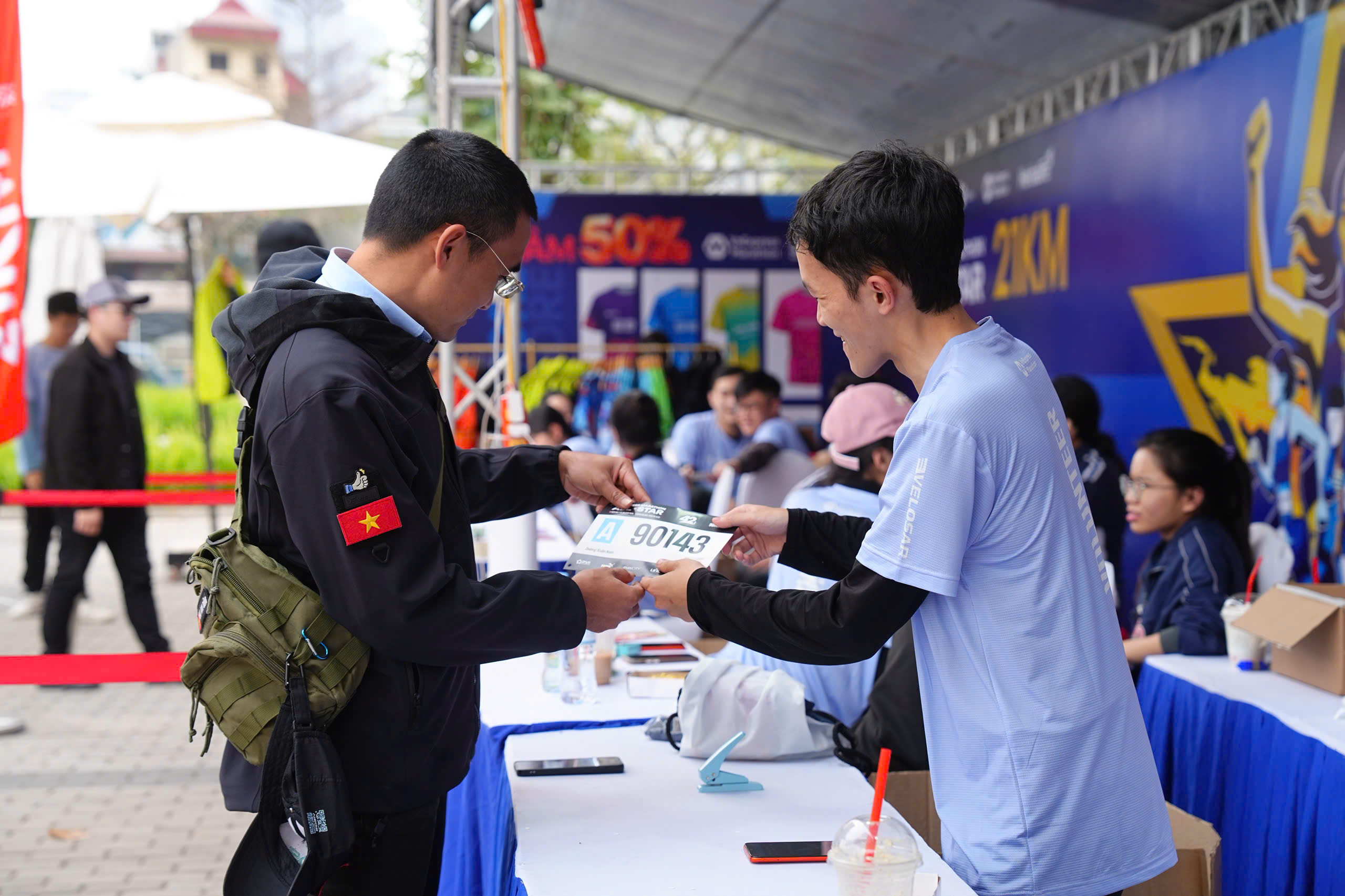 Leading contenders Edwin Kiptoo and Hoang Nguyen Thanh checked their race-kit information at the expo area. While the Kenyan runner is determined to compete for the top spot in the men's 21km distance, Vietnam's "marathon king" considers this a highly selective event, bringing together the running community's finest. |
