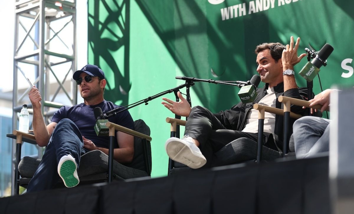 Federer (right) comments at the 2025 Laver Cup. Photo: *Laver Cup* |
