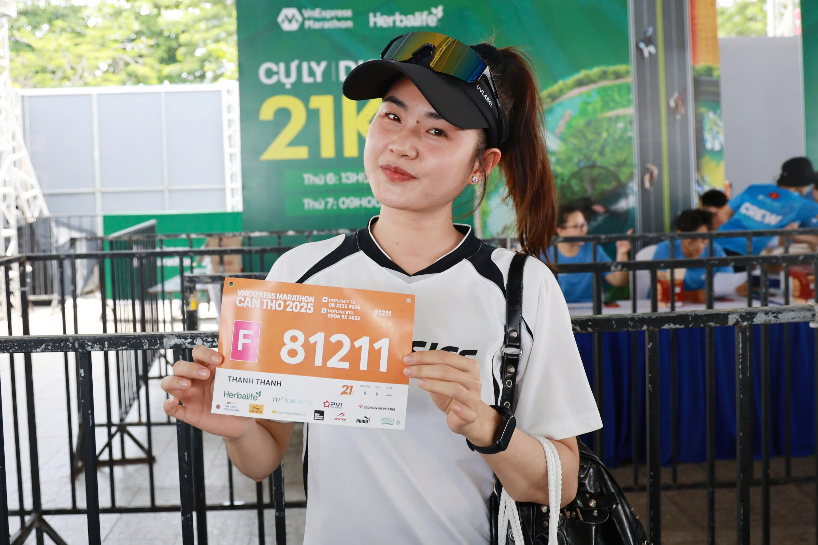 Ngoc Oanh currently runs a business in Can Tho. She said she had been eagerly awaiting the VnExpress Marathon Can Tho, wanting to experience the lively atmosphere in her city. She frequently participates in VM races. Most recently, in Nha Trang, she completed the 21km in 2 hours and 23 minutes. (Linh Lam)