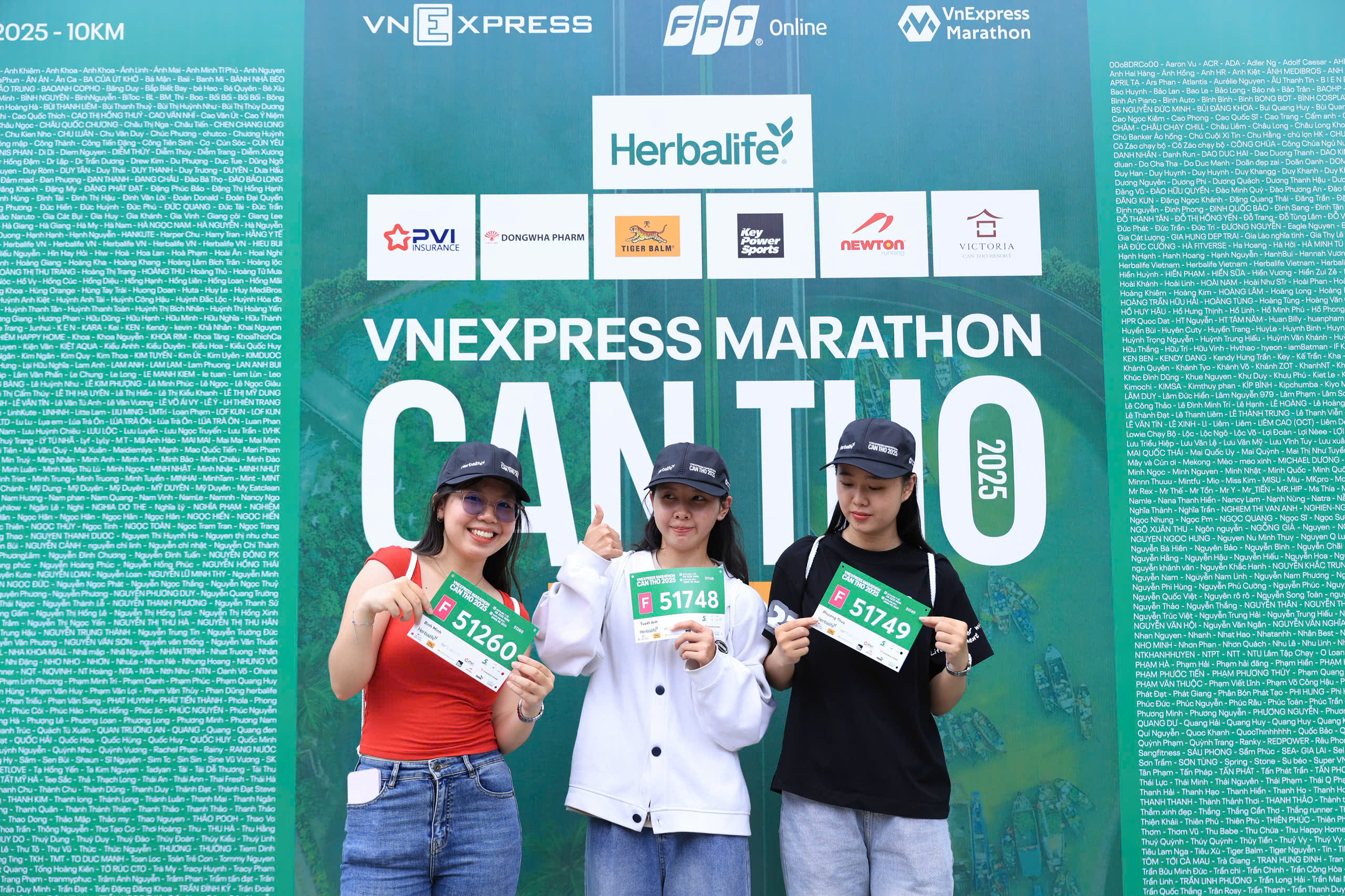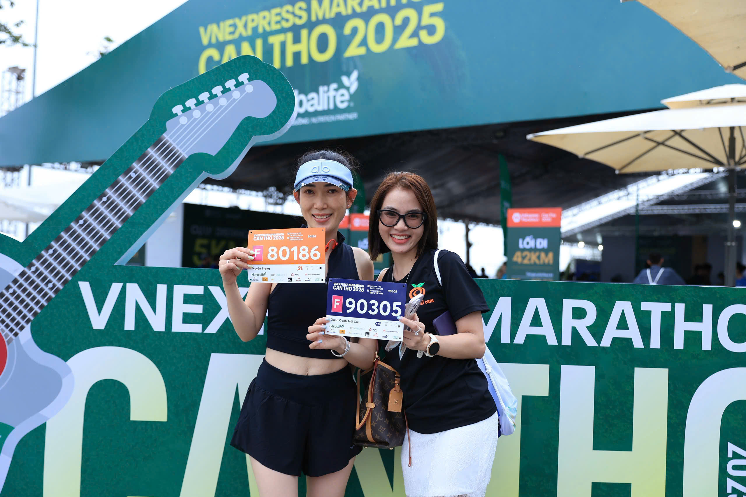 Vu Ngoc Oanh, Bib 90305, ran the 42km race. The Can Tho resident said competing in her hometown was an advantage and hoped to finish while creating lasting memories. Her friend, Huyen Trang, ran the 21km distance. (Linh Lam)