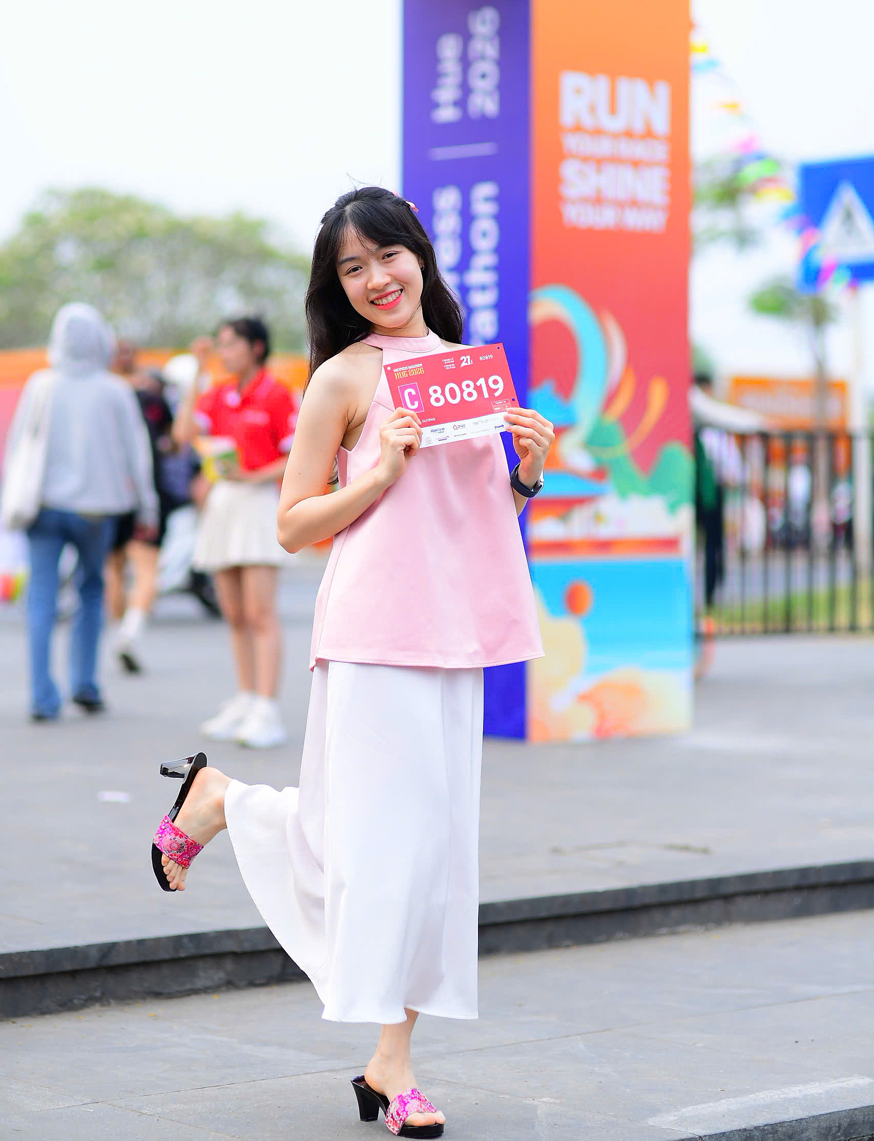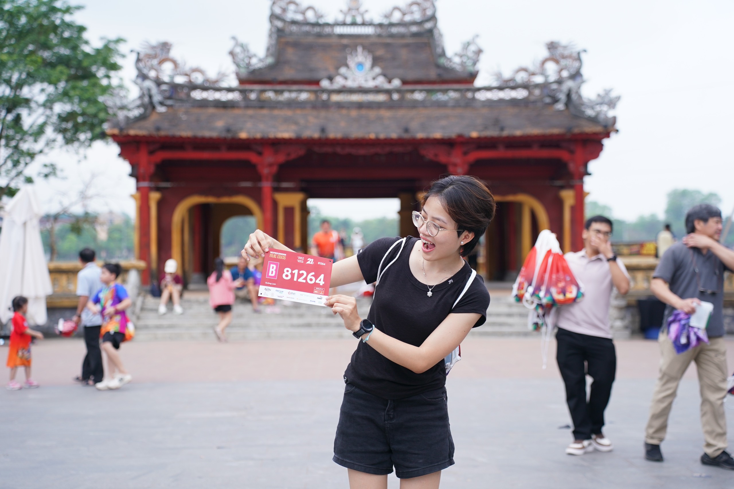 Runner Linh Tran expressed excitement upon receiving her 21km bib. She noted that this year's course is more scenic, with adjustments made to sections within the imperial city, guiding runners past numerous heritage structures. Her goal, she added, is to "finish gracefully".