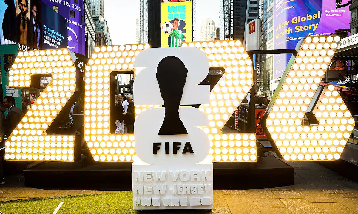 The 2026 World Cup logo in Times Square, New York City, USA on 18/5/2023. Photo: Reuters |