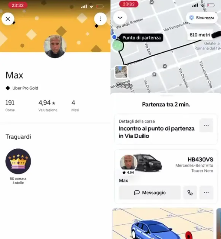 Tonetto's profile, at 51 years old, recently circulated on Italian social media, revealing he has completed nearly 200 trips in four months with an impressive average rating of 4.94/5 stars.