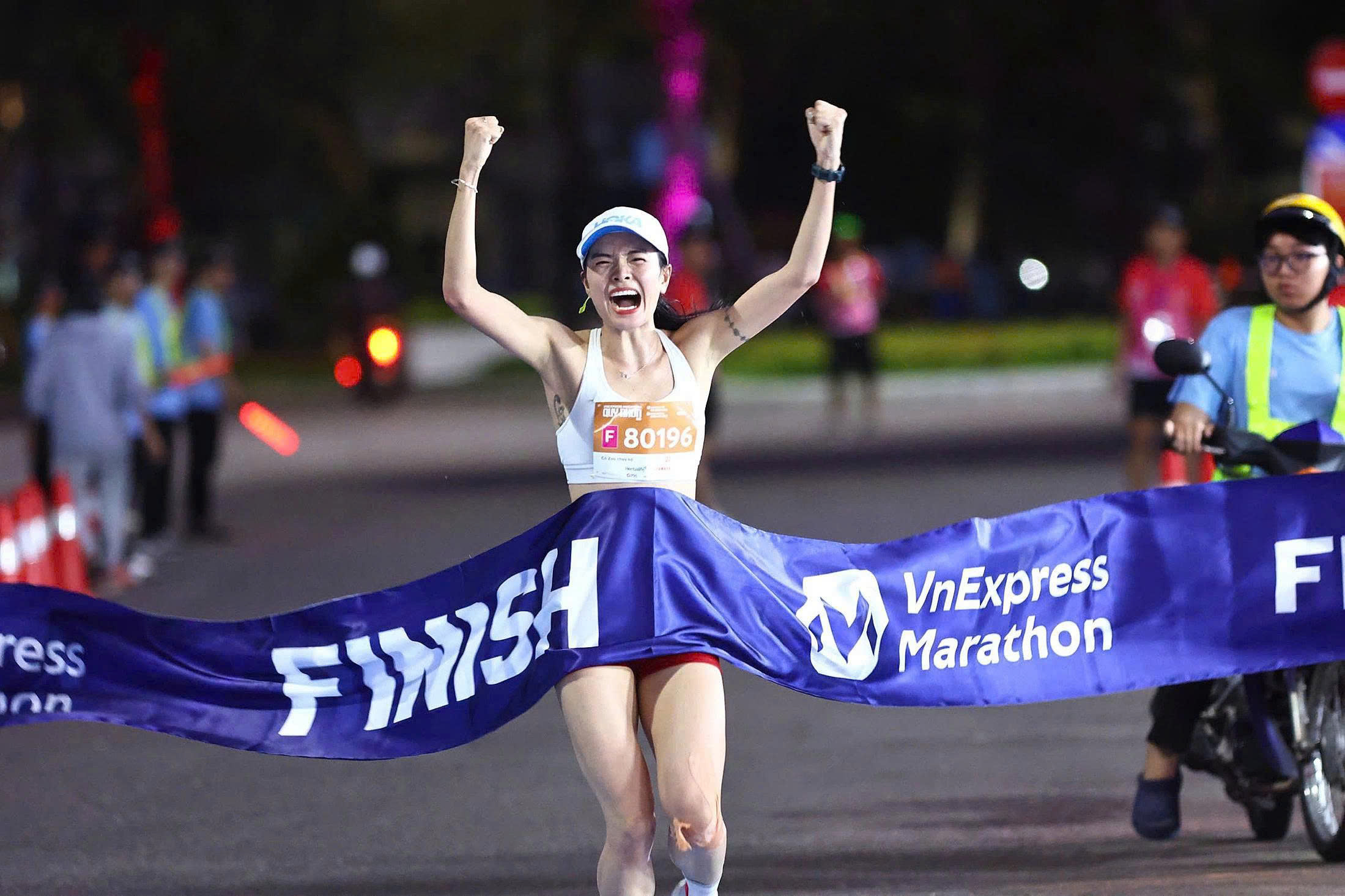 Tran Duyen wins her first VnExpress Marathon in Quy Nhon in June. Photo: VnExpress Marathon