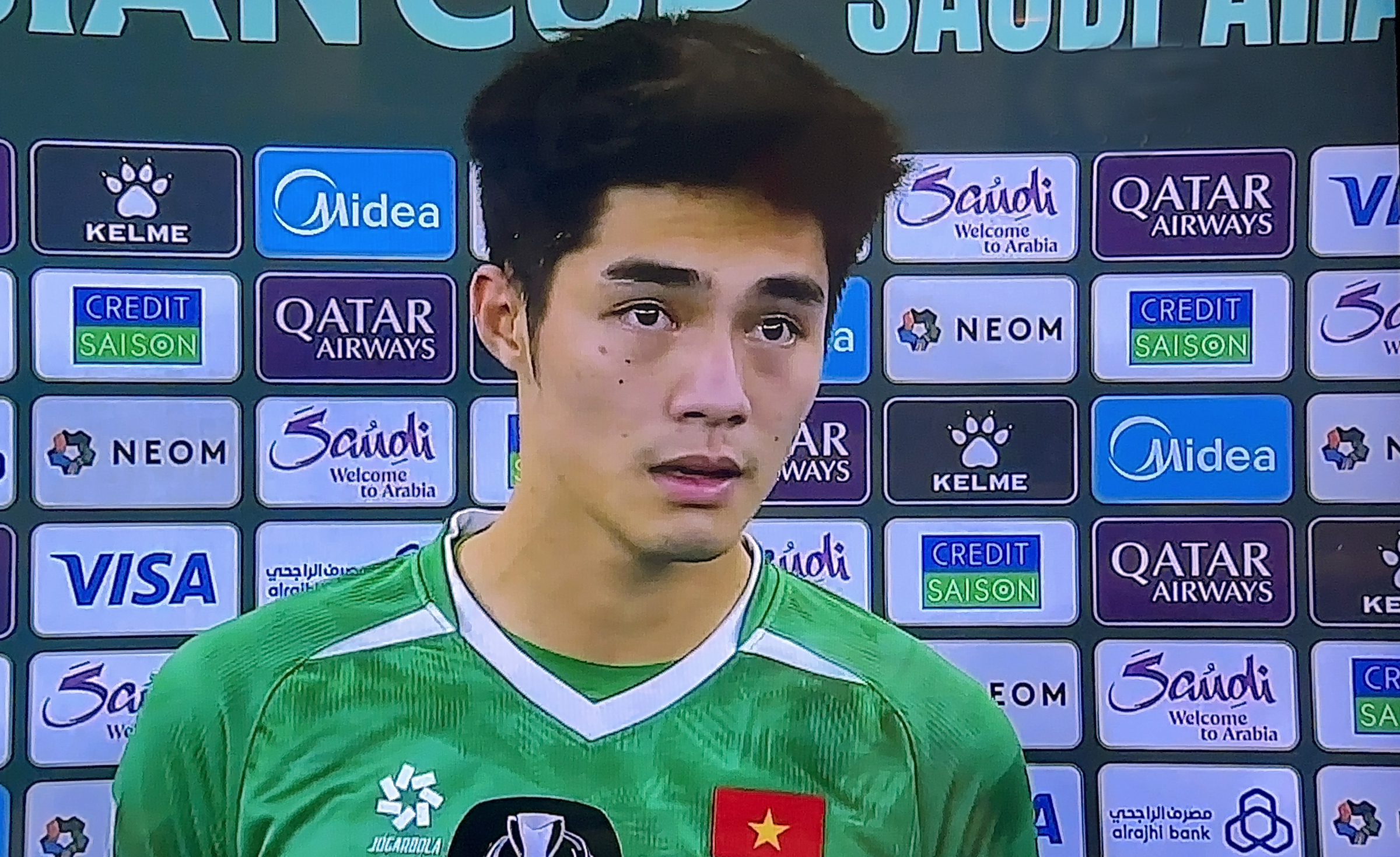 Vietnam's U23 team suffered a 0-3 defeat to China in the U23 Asian 2026 semifinals on the evening of 20/1 at Prince Abdullah Al Faisal Stadium. Following the match, goalkeeper Tran Trung Kien, representing Vietnam in an interview with the organizers, appeared visibly upset, with red-rimmed eyes.