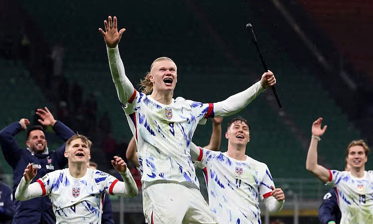 Haaland celebrates Norway's 4-1 victory over Italy at San Siro stadium, Milan, Italy on the evening of 16/11. *Reuters* |