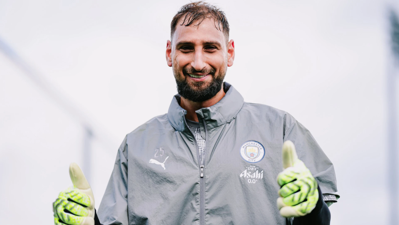 Gianluigi Donnarumma in his first training session with Man City on 11/9. Photo: *Man City* |