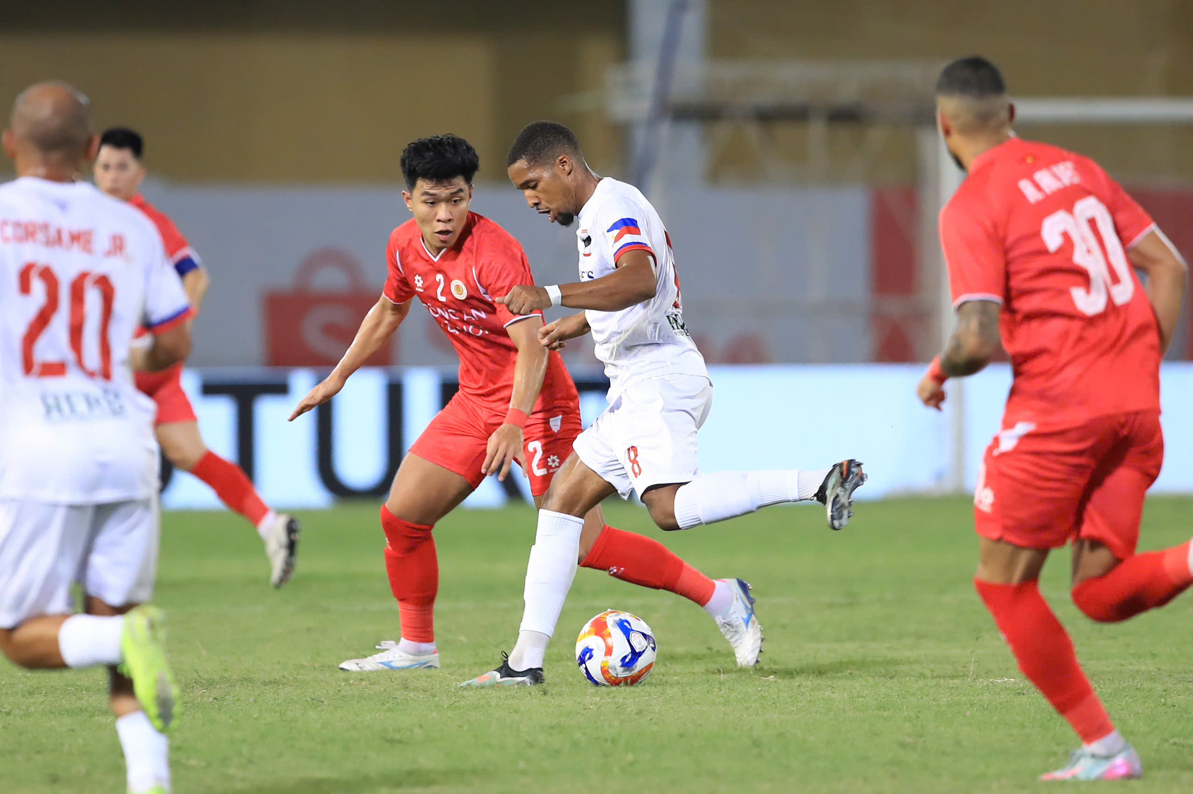 Hanoi FC (red) defeated Dynamic Herb Cebu (white) 1-0 in their second Group A match of the 2025-2026 ASEAN Club Championship at Hang Day Stadium, Hanoi on 24/9/2025. Photo: Minh Minh |
