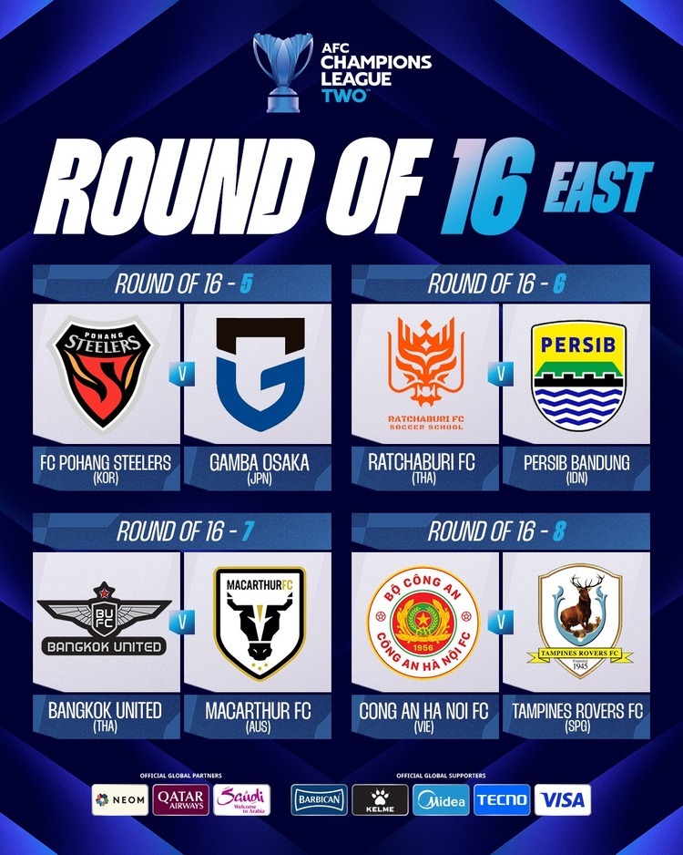In the East region, CAHN advanced to the round of 16 as runners-up of Group E, alongside Ratchaburi FC (Group F, Thailand), Bangkok United (Group G, Thailand), and Pohang Steelers (Group H, South Korea). Excluding Macarthur of Australia from their own group, the Vietnamese representative was set to meet one of three group winners: Gamba Osaka (Group F, Japan), Persib Bandung (Group G, Indonesia), or Tampines Rovers (Group H, Singapore).