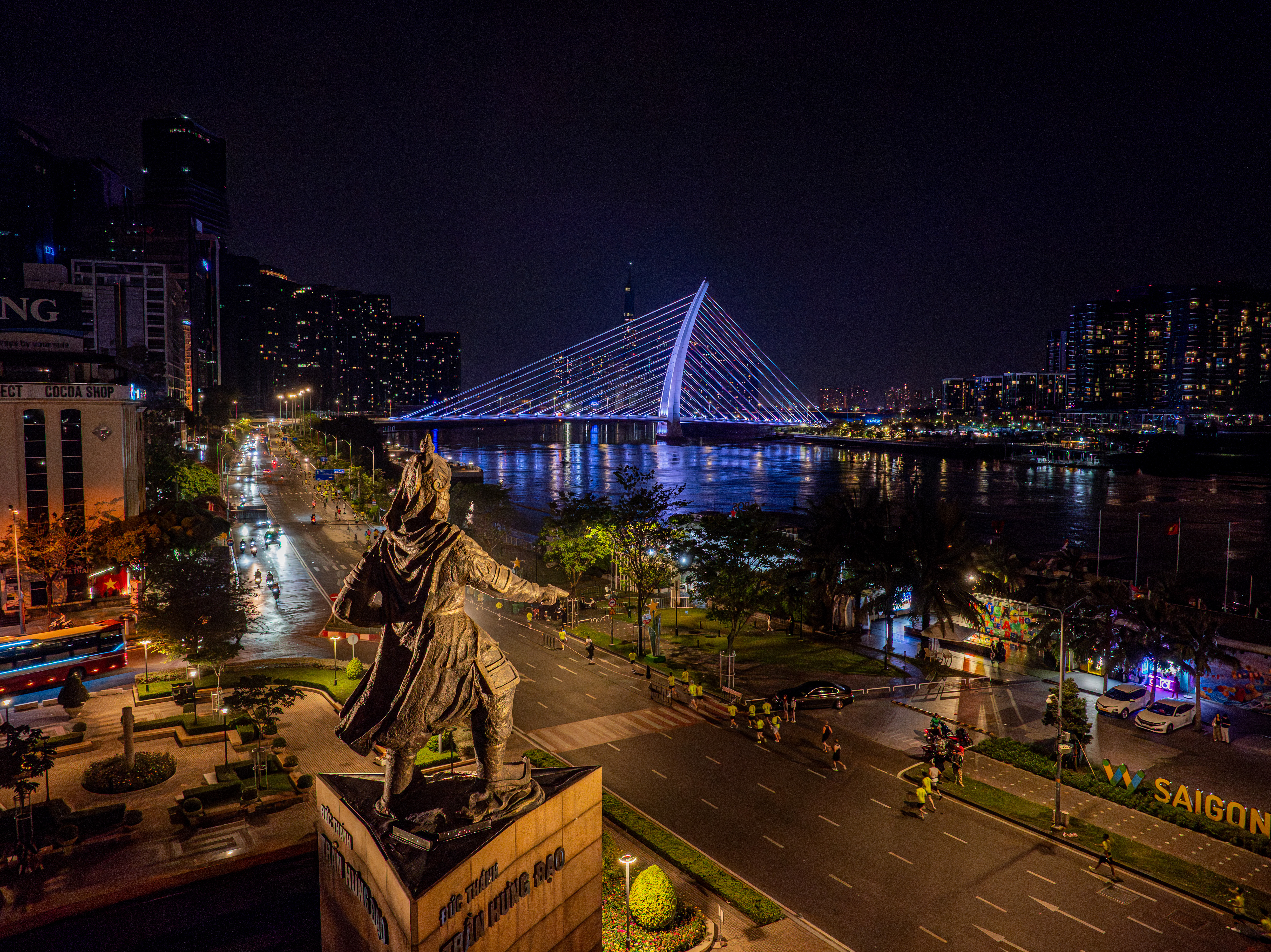 From the Tran Hung Dao statue, runners continued along Ton Duc Thang Street, heading onto Ba Son Bridge, one of the city's most beautiful cable-stayed bridges.