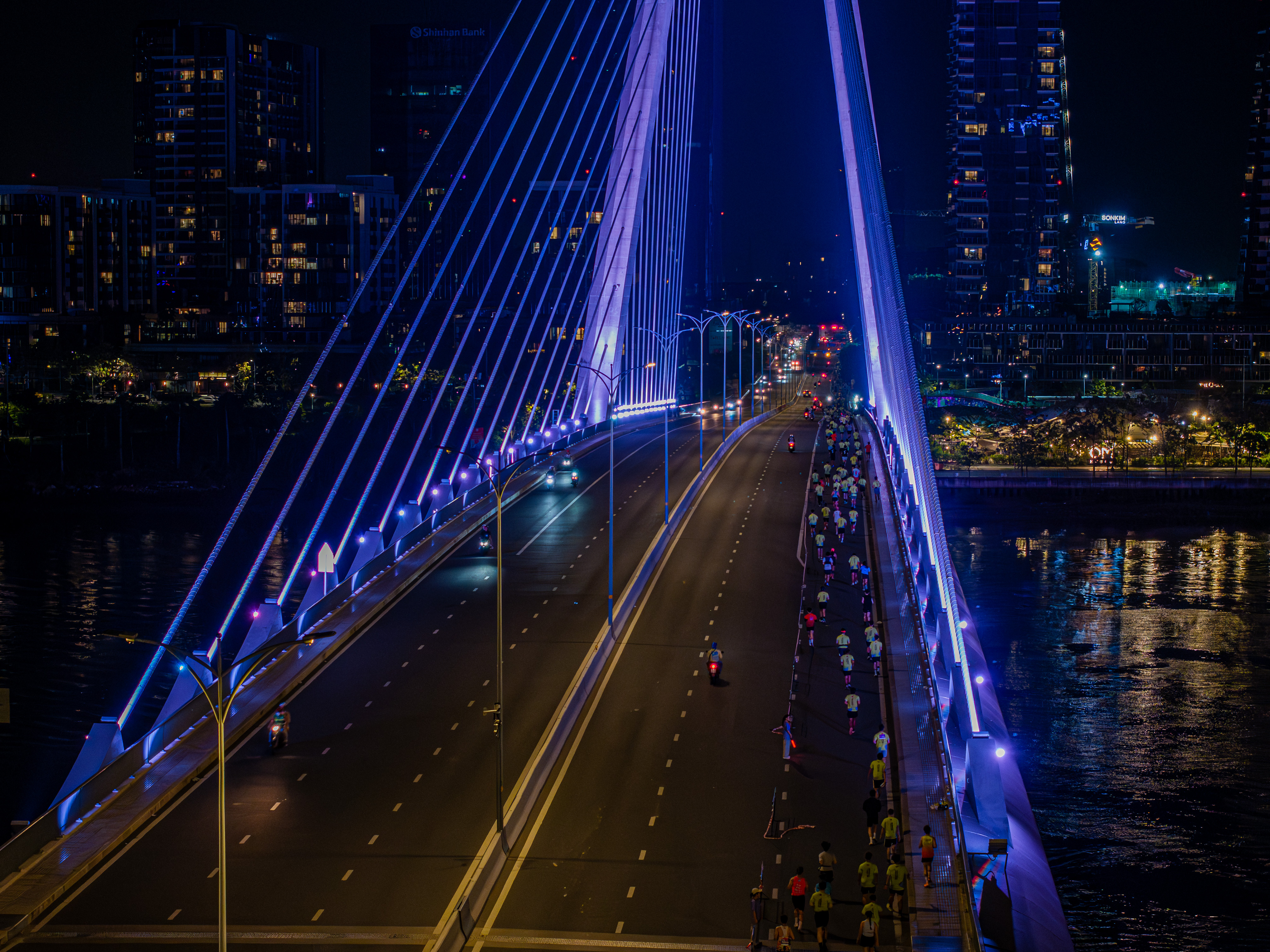 Runners conquered Ba Son Bridge, one of the challenges along the VnExpress Marathon Ho Chi Minh City Midnight route.