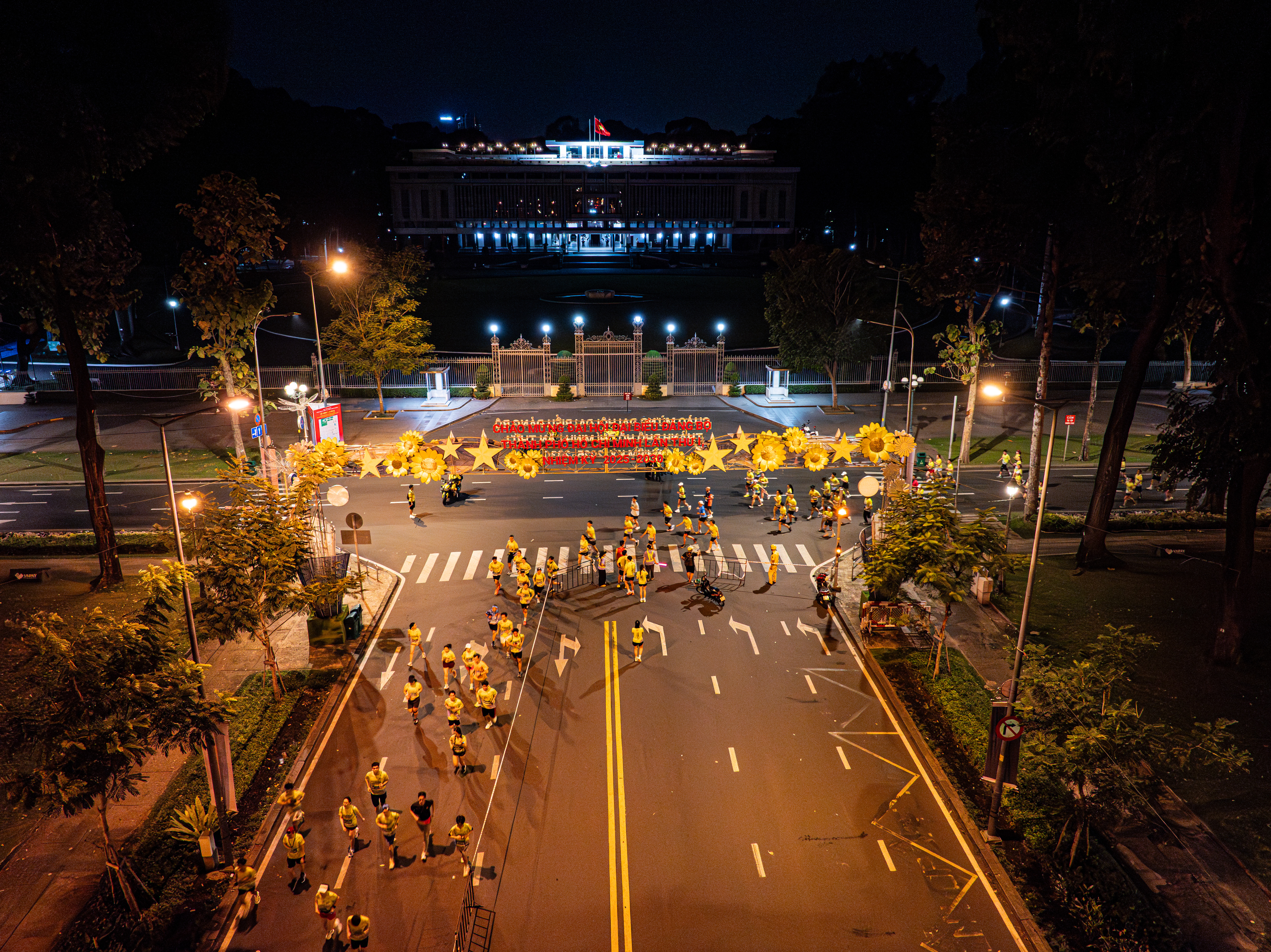 In the photo, the majestic scene of Independence Palace contrasted with the lively atmosphere of the race.