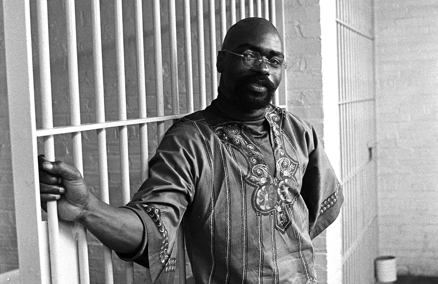 Rubin Carter at the "personal contact" area of the New Jersey State Prison in 1974. Amnesty International described him as a "prisoner of conscience" and asserted his human rights had been violated.