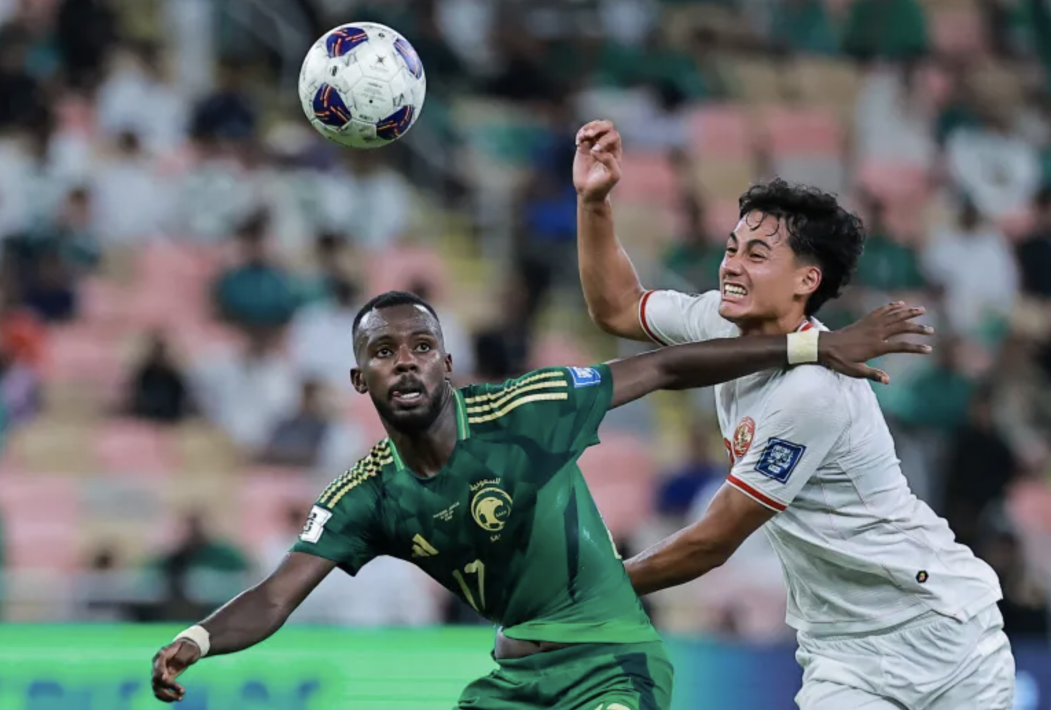 Indonesia (in white) drew 1-1 with Saudi Arabia (in green) in their opening Group C match of the 2026 World Cup qualifiers at King Abdullah Sports City Stadium, Saudi Arabia, on 5/9/2024. Photo: *Reuters* |