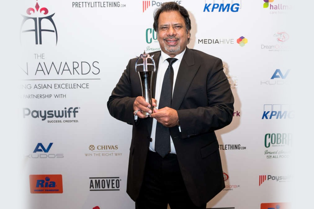 Jahangir Khan is honored with the Outstanding Achievement in Sport Award at the 2018 Asian Awards held in London, England. Photo: Pakistanshining |