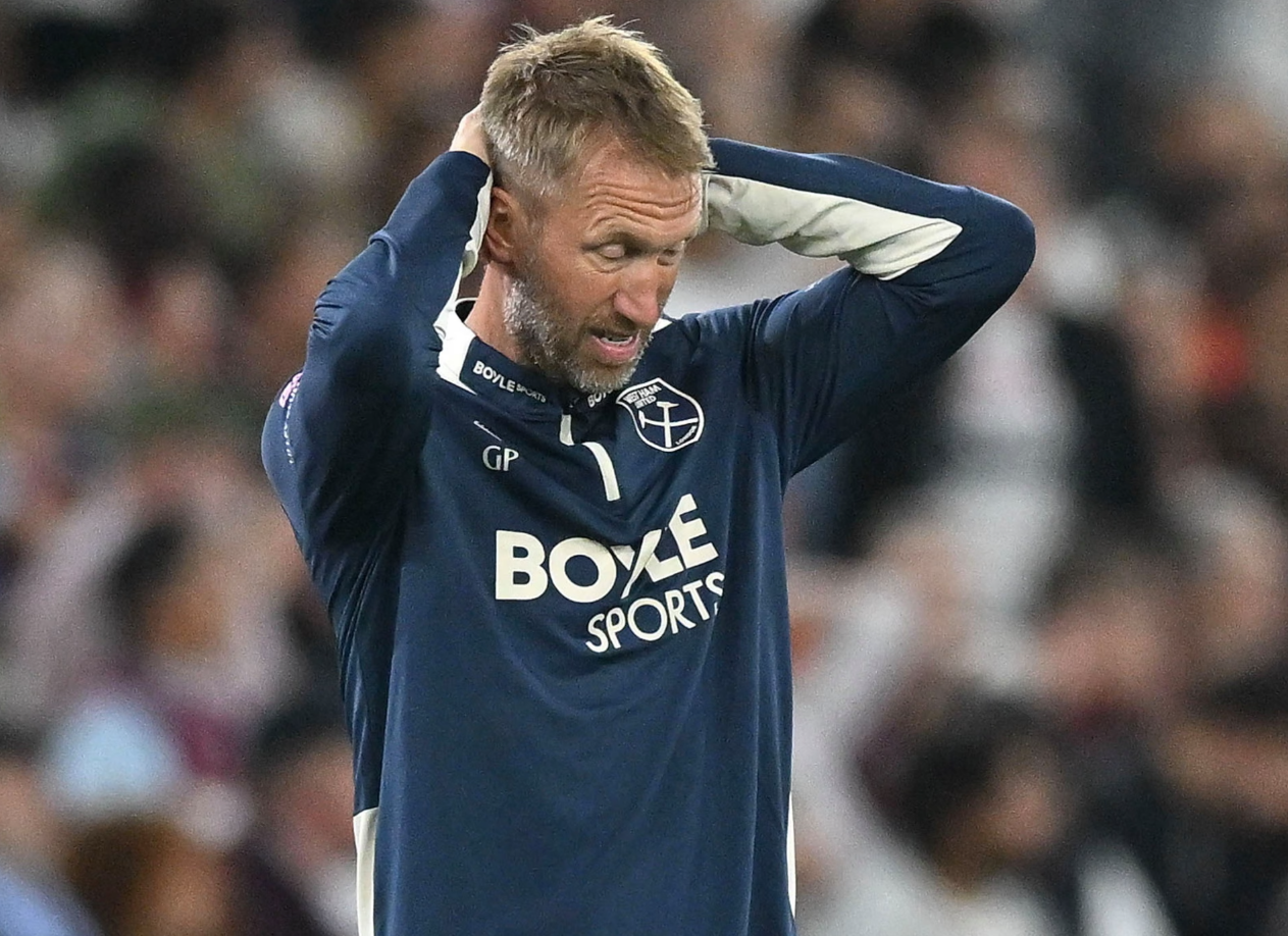 Graham Potter under pressure. It's only mid-August, but West Ham are already showing signs of a relegation battle. They were thrashed 3-0 by newcomers Sunderland in the first round and then lost 5-1 at home to Chelsea. This is the first time in their history that they have conceded eight goals in their first two league games.