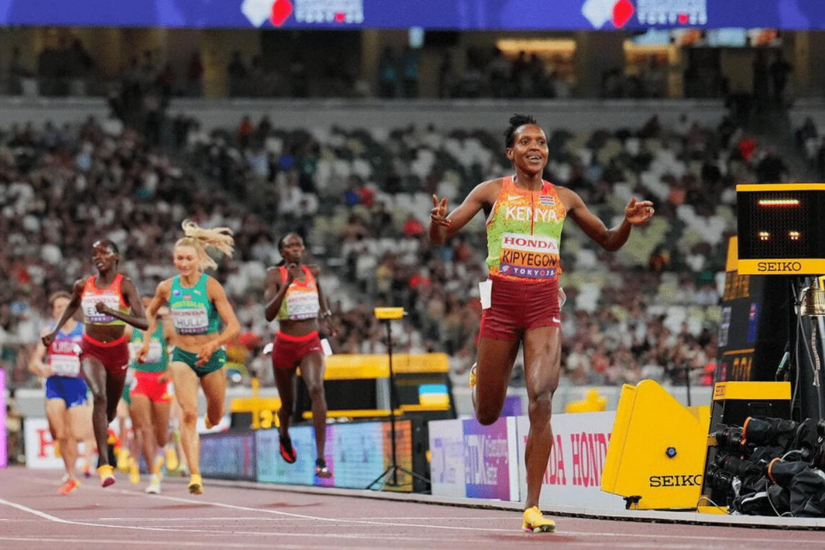 Kipyegon finished in a time of 3 minutes 52.15 seconds at Japan National Stadium on 16/9, almost three seconds ahead of compatriot Dorcus Ewoi (3 minutes 54.92 seconds). Jess Hull of Australia took bronze in 3 minutes 55.16 seconds, while another Kenyan, Nelly Chepchirchir, finished fourth with a personal best of 3 minutes 55.25 seconds.