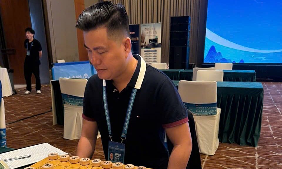 Lai Ly Huynh (left) during his match against Chong Heung Ming in round 7 of the 2025 World Xiangqi Championship in Shanghai, China on 25/9/2025. Photo: TLKD