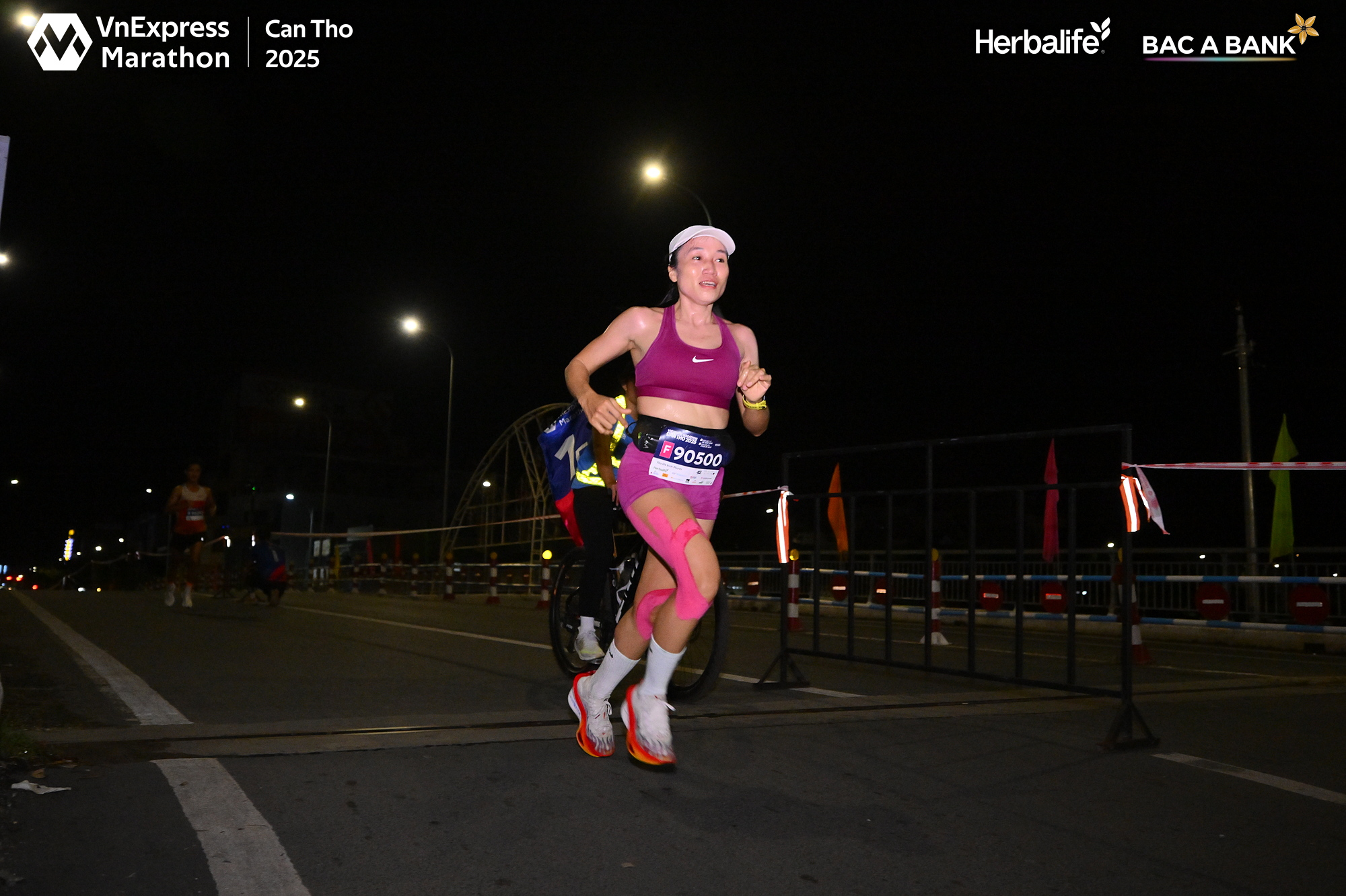 Thu Ha during the VnExpress Marathon Can Tho on the morning of 14/9. Photo: VnExpress Marathon