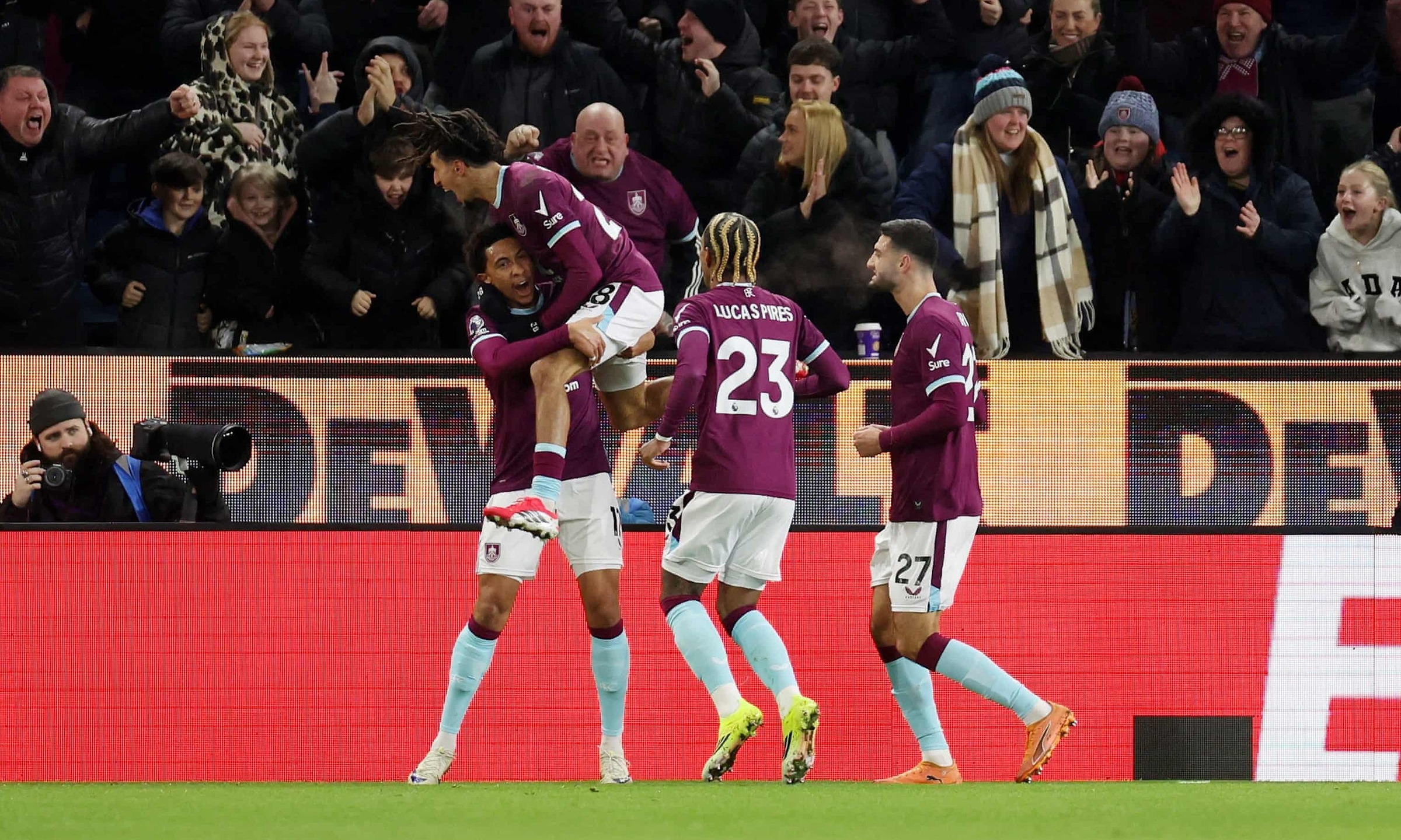 Burnley players celebrate a goal. Photo: Reuters |