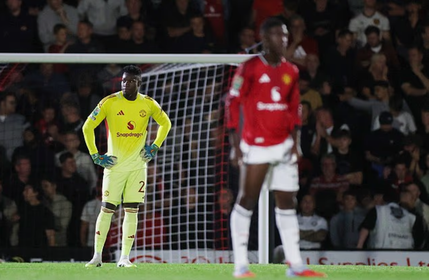 Andre Onana was among Man Utd's worst performers. In his first start of the season, the Cameroonian goalkeeper made errors that led directly to Man Utd conceding two goals in the first half. He was slow to react to Charles Vernam's opener and then fumbled the ball, allowing Tyrell Warren to score into an empty net for a 2-0 lead.