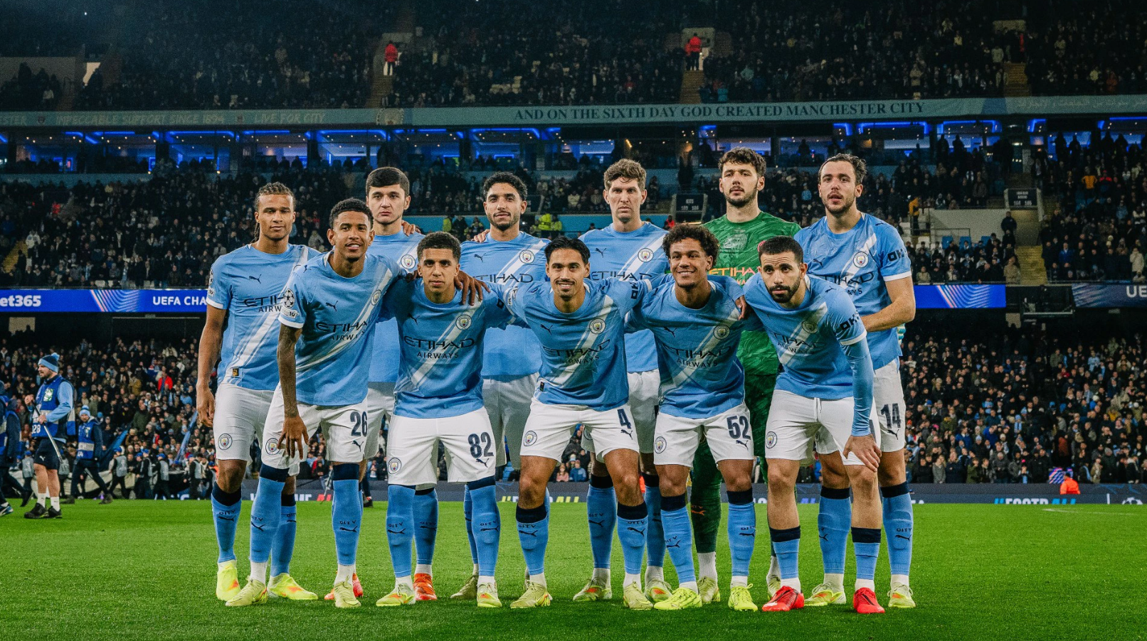 Manchester City's starting lineup in their 0-2 loss to Leverkusen on matchday five of the Champions League group stage at the Etihad Stadium, Manchester, England, on 25/11. Photo: Man City.