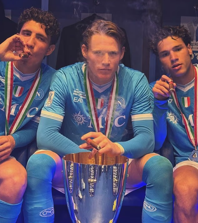 After the match, McTominay appeared in the locker room, smoking a cigar in celebration with teammates Luca Marianucci and Antonio Vergara. This image quickly went viral on social media.