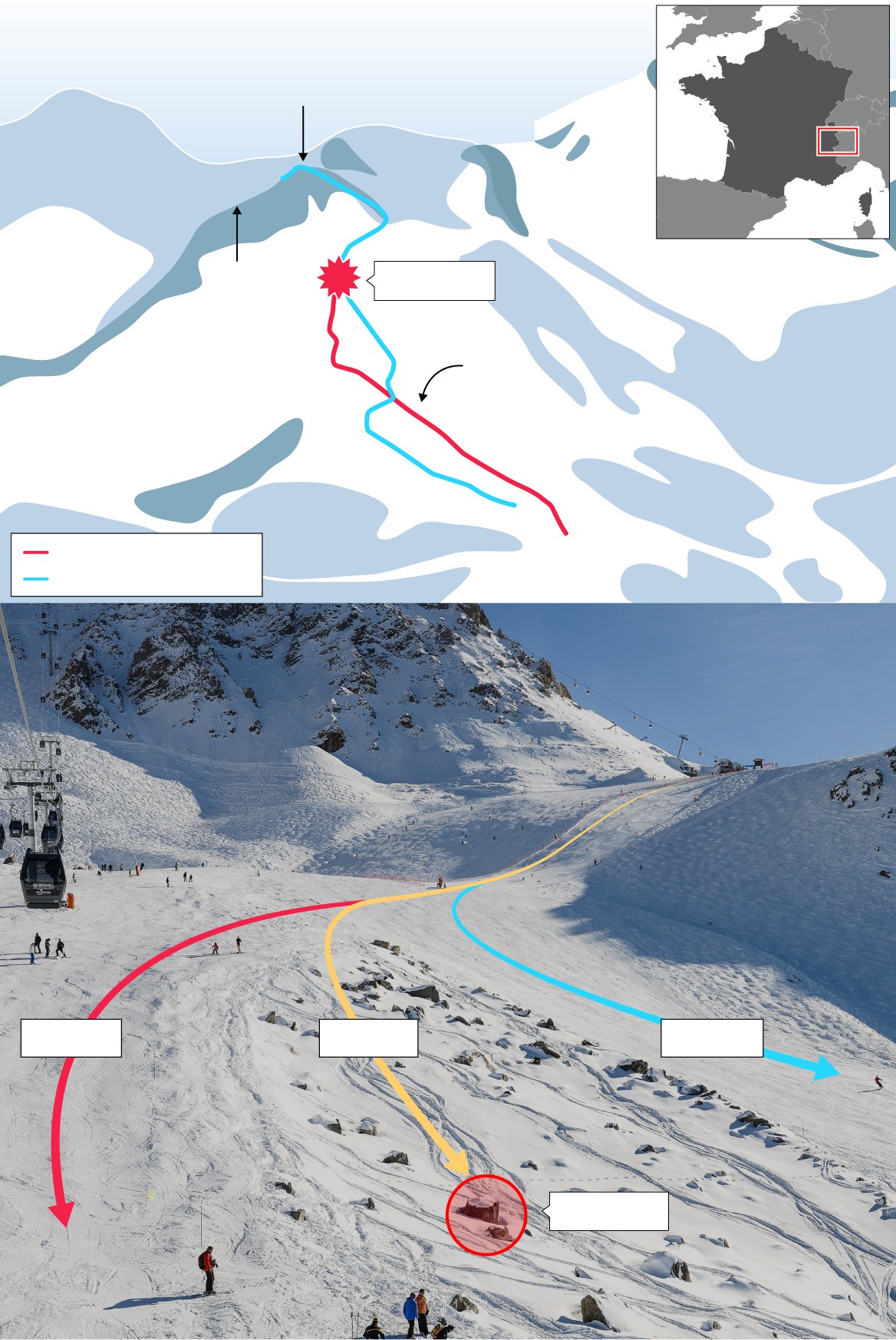 The location (red circle) where Michael Schumacher had his skiing accident on 29/12/2013 in the French Alps. Photo: Daily Mail