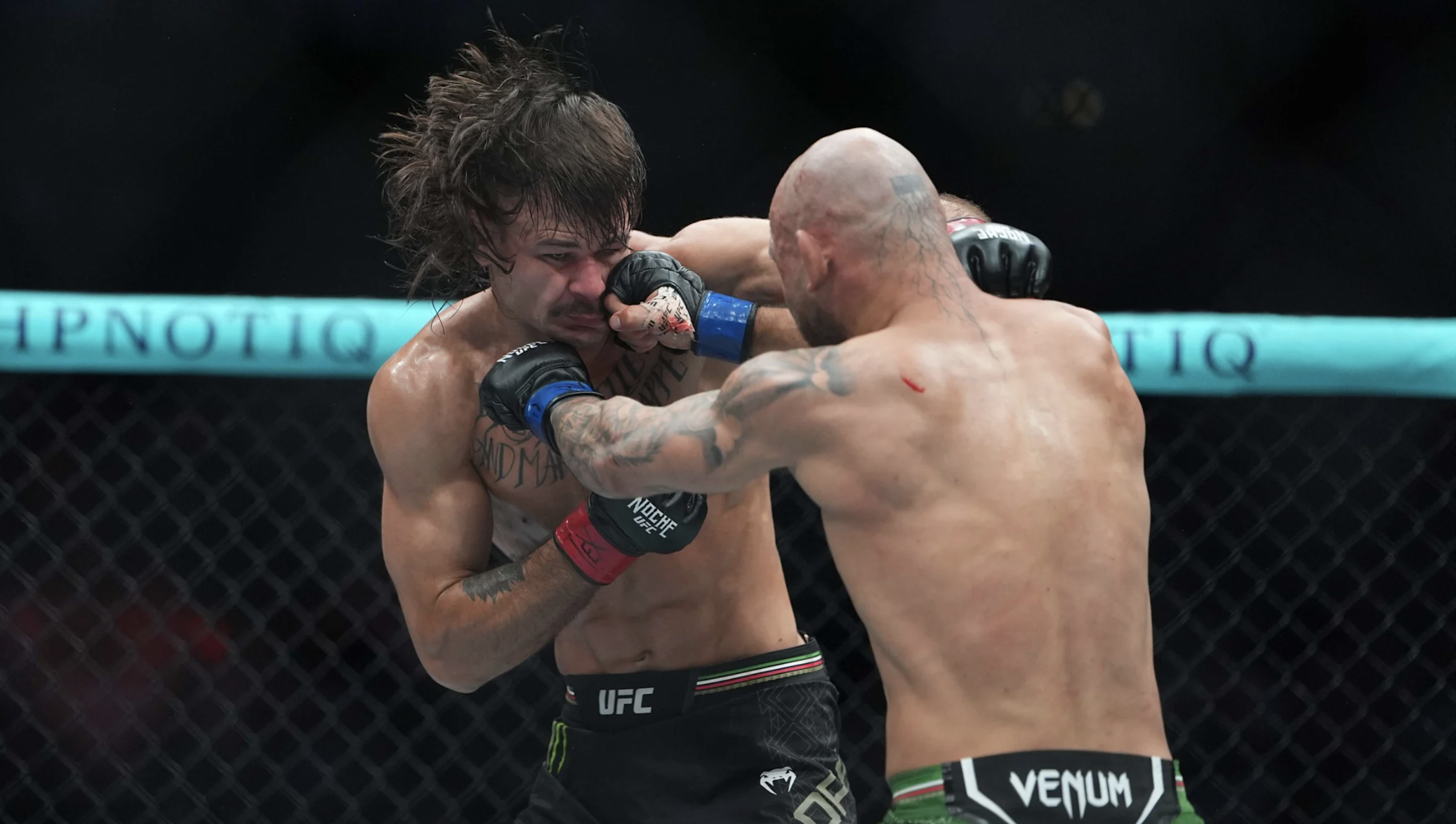 Diego Lopes (left) defeated Jean Silva in a featherweight bout at UFC Fight Night 259 at the Frost Bank Center, USA, on the morning of 14/9/2025, Hanoi time. Photo: Reuters