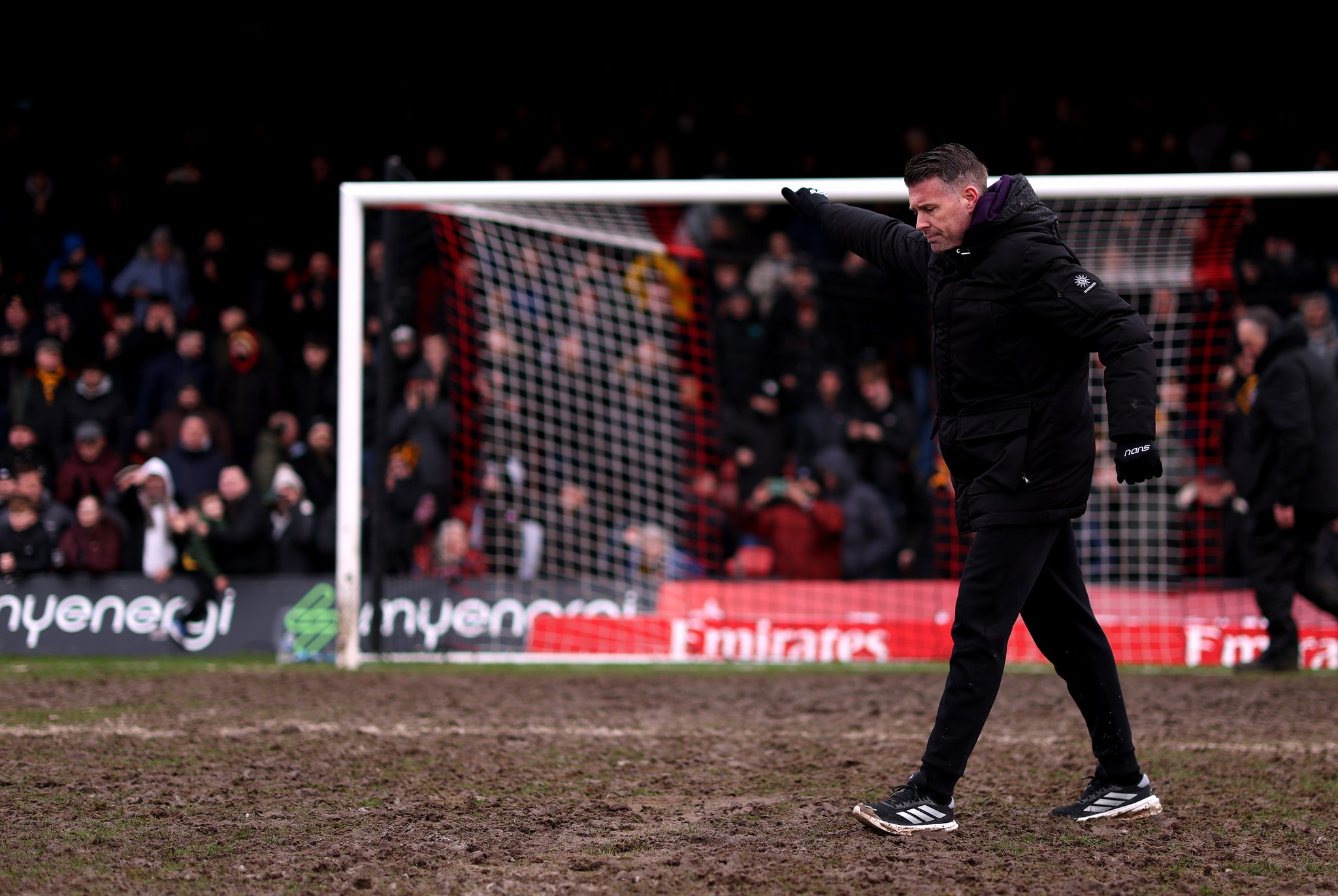 Coach Rob Edwards steps onto the pitch after Wolves defeated Grimsby Town 1-0 in the FA Cup fourth round on 15/2/2026. Photo: Premier League |