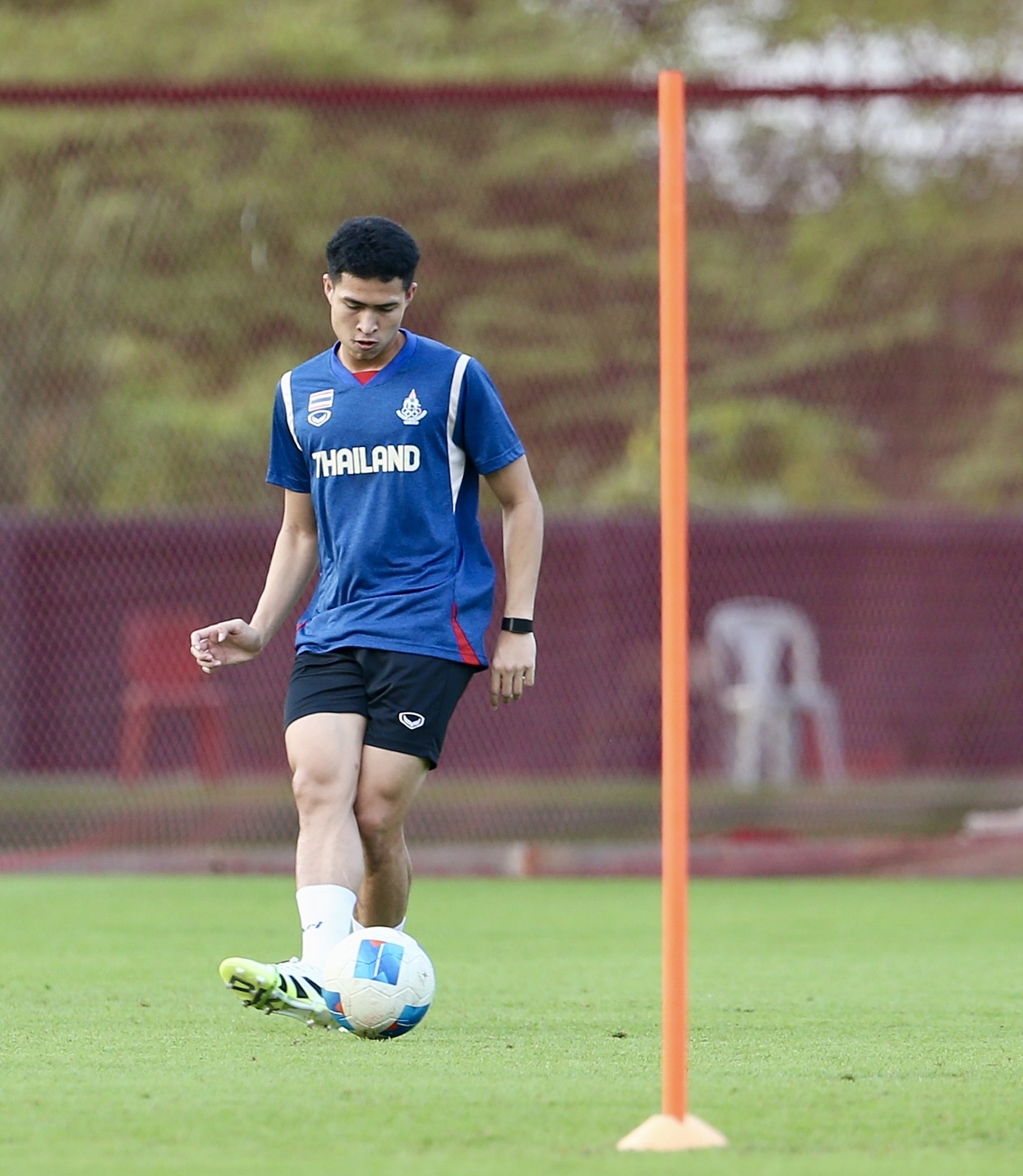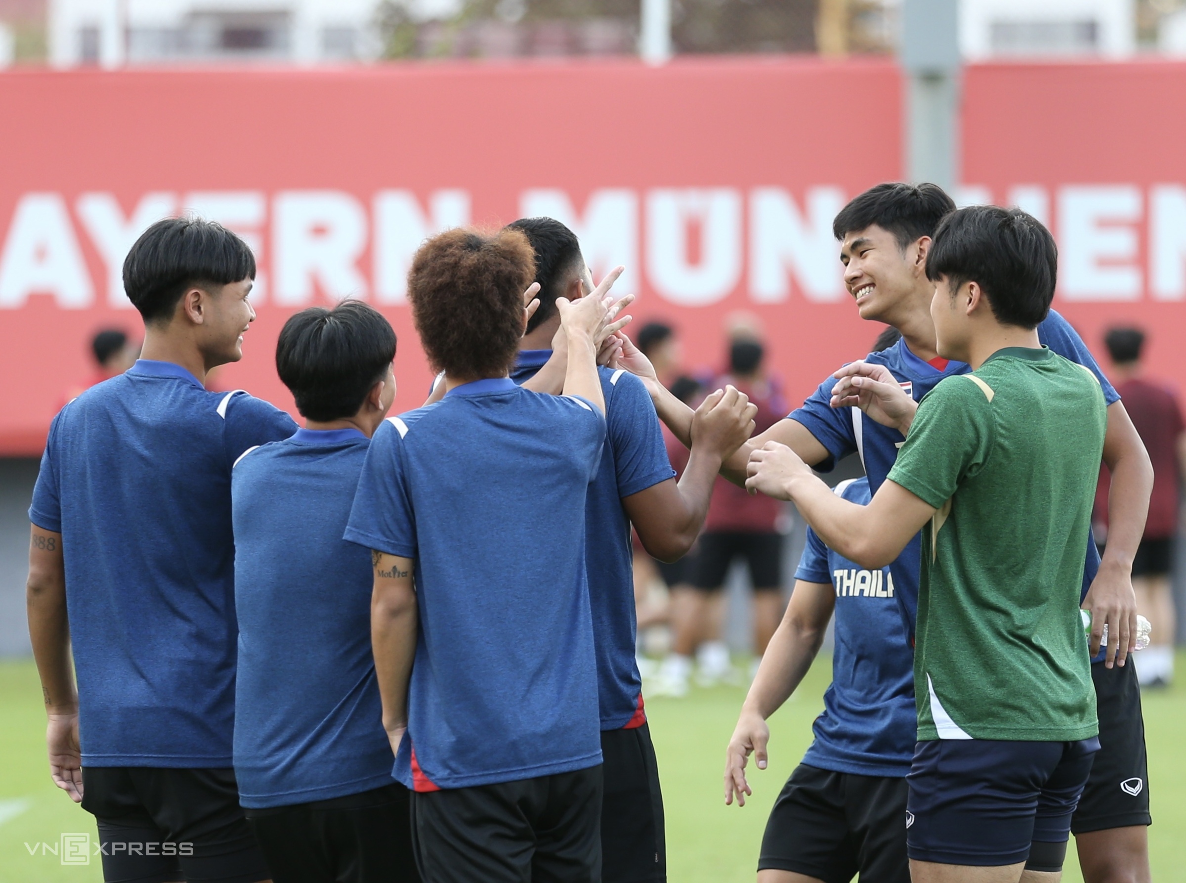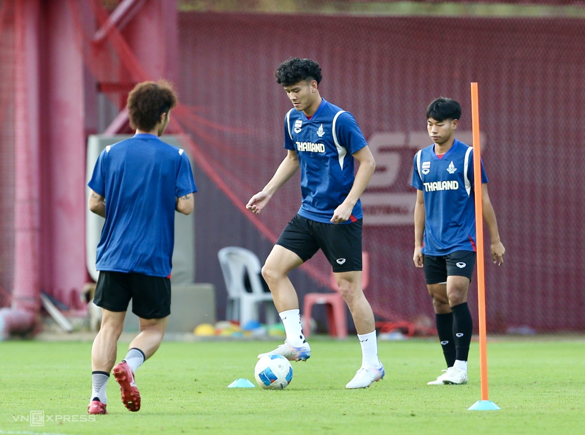 Thailand is essentially at full strength. However, striker Chinngoen Phutonyong (in blue shirt) had to train separately this afternoon.