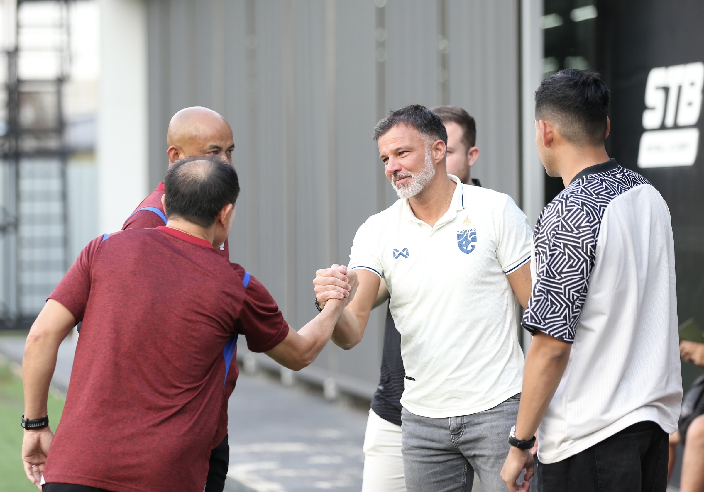 The coach, born in 1981, firmly shook hands and offered words of encouragement to U22 coach Thawatchai Damrong-Ongtrakul, then spoke privately with midfielder Iklas Sanron. Afterward, he observed the remainder of the training session. |