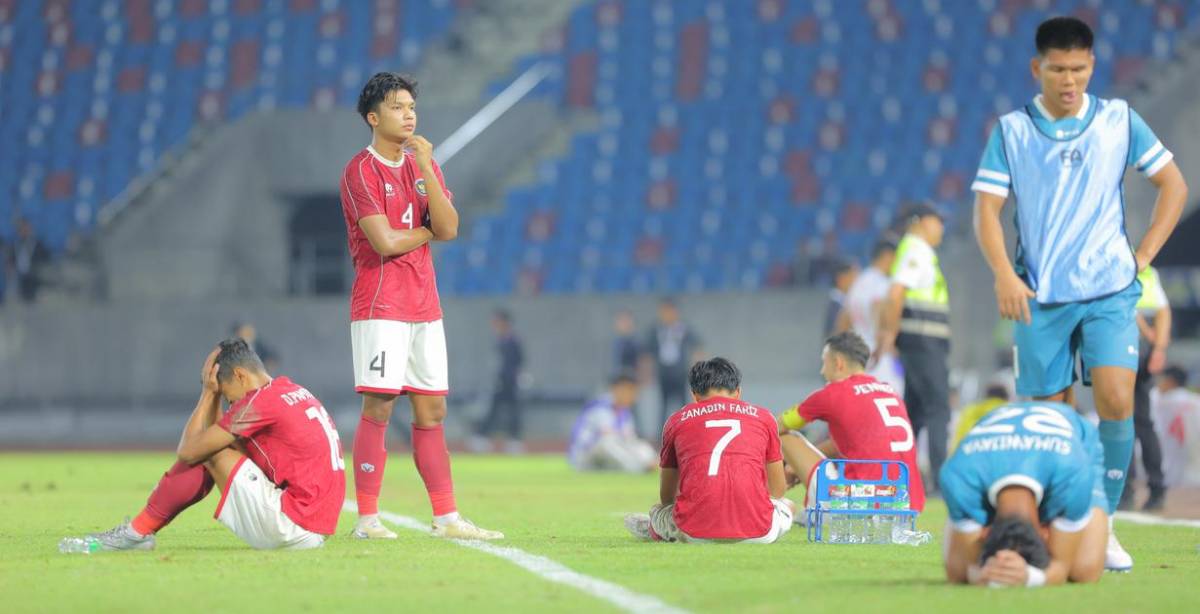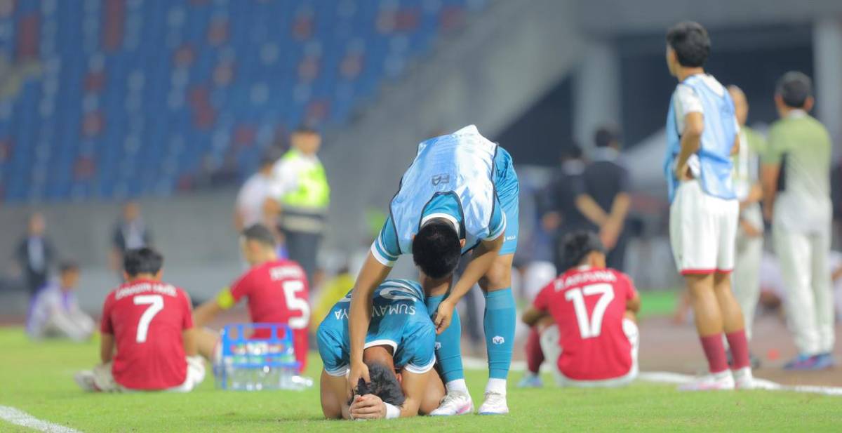 An Indonesian player collapsed onto the field, clutching his head, unable to hold back tears as the team faced an early exit from this year's tournament.