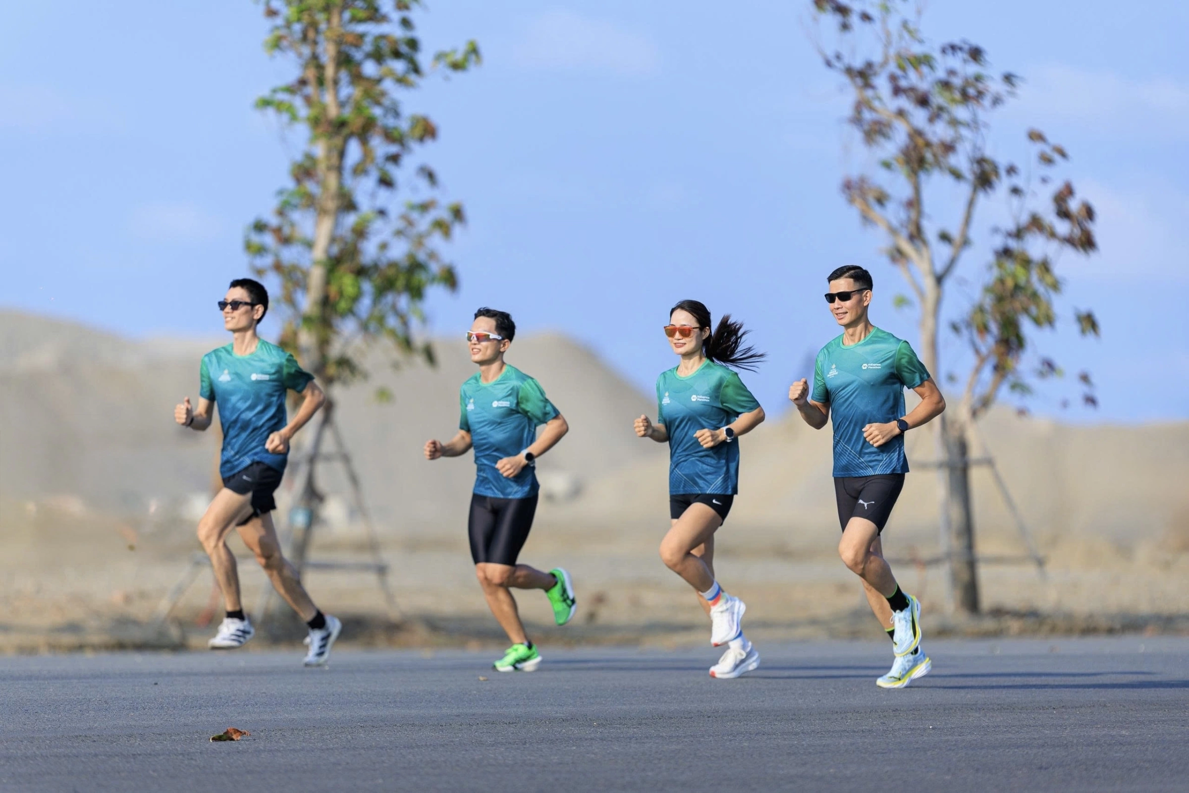 Dan Quyet (far right) and other runners test the race course. Photo: VnExpress Marathon