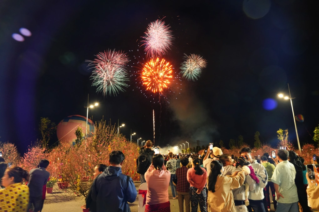 Visitors watch fireworks at the Can Gio spring festival. Photo: Thanh Tung