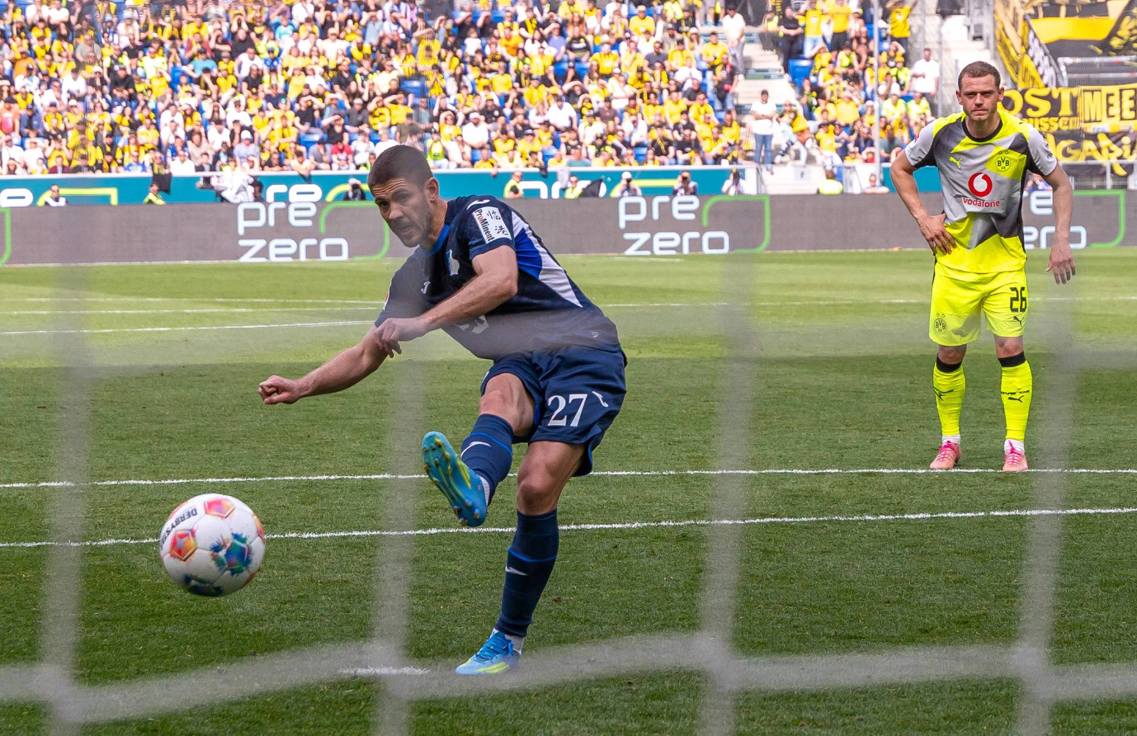 Andrej Kramaric scores a penalty in Hoffenheim's 2-1 win over Dortmund in Bundesliga round 30 on 18/4. Photo: Imago.