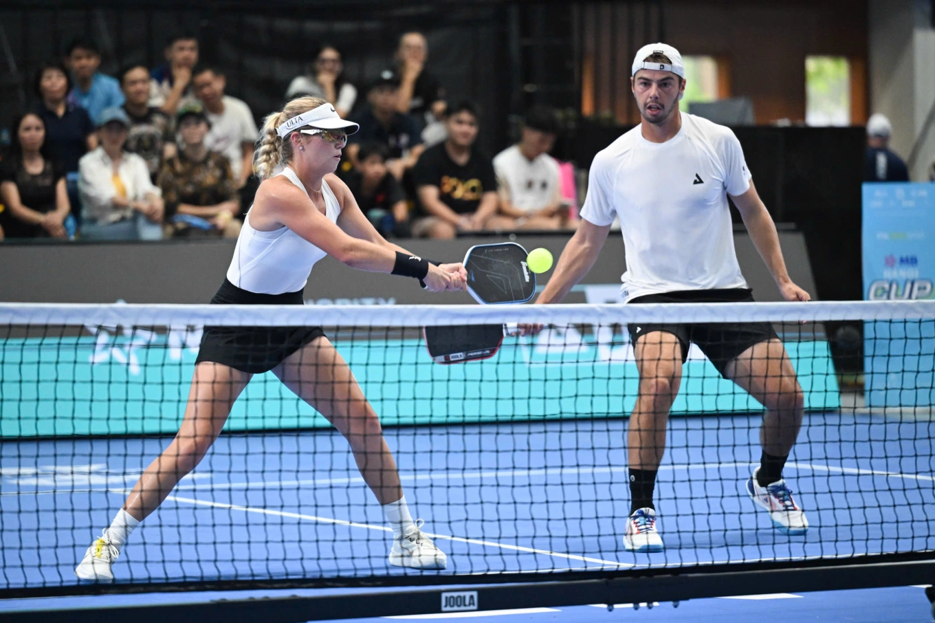 Top two world players Anna Leigh Waters (left) and Ben Johns during the mixed doubles semifinals at My Dinh Athletics Palace, Hanoi on 4/4. *Photo: Giang Huy*