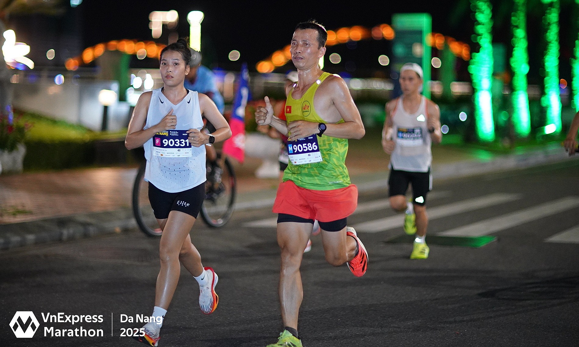 Yen Thu (left) competing in the VnExpress Marathon Danang. Photo: VnExpress Marathon