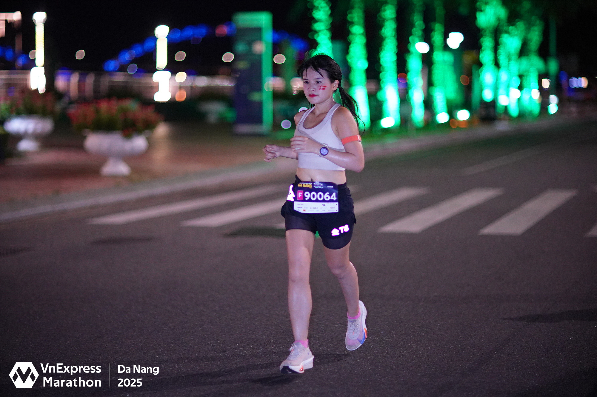 During the first 20 km, the Ha Tinh native overtook some elite runners but was later passed by them. At the 20km mark, she encountered a French competitor, ran alongside her during a climb, and then surpassed her.
