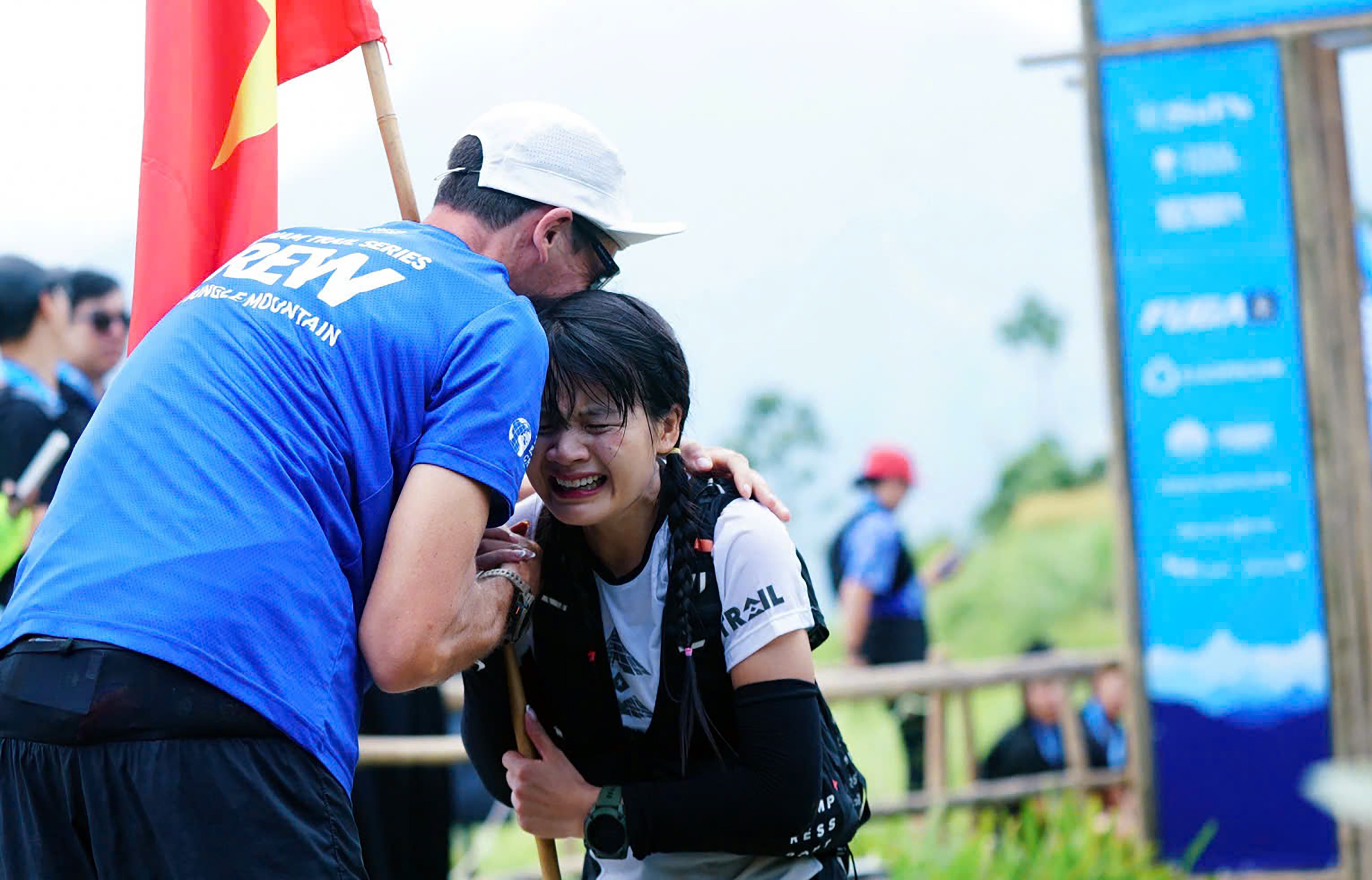 But a surprise unfolded when Tra Giang, a recreational runner from Ha Tinh competing in her first 100km race, came in second. On the morning of 21/9, after 18 hours, 7 minutes, and 58 seconds, the 1.5m, 42kg runner crossed the finish line carrying the Vietnamese flag. She flashed her familiar bright smile, then burst into tears in the arms of an organizer.