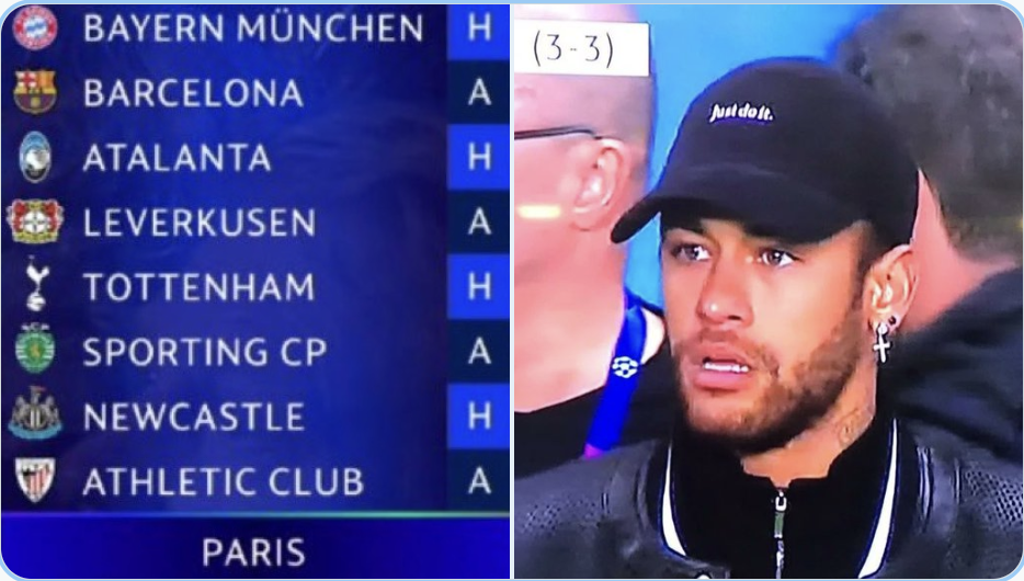 A meme captures Neymar's expression upon seeing PSG's opponents in the expanded 2025-2026 Champions League group stage. Image: Troll Football |