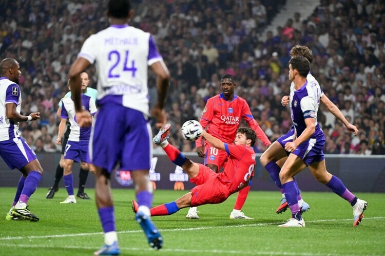 In the 7th minute, following a missed shot by Ousmane Dembele, Neves controlled the ball with two touches before executing a bicycle kick that sent the ball into the far corner, leaving the Toulouse goalkeeper rooted to the spot.
