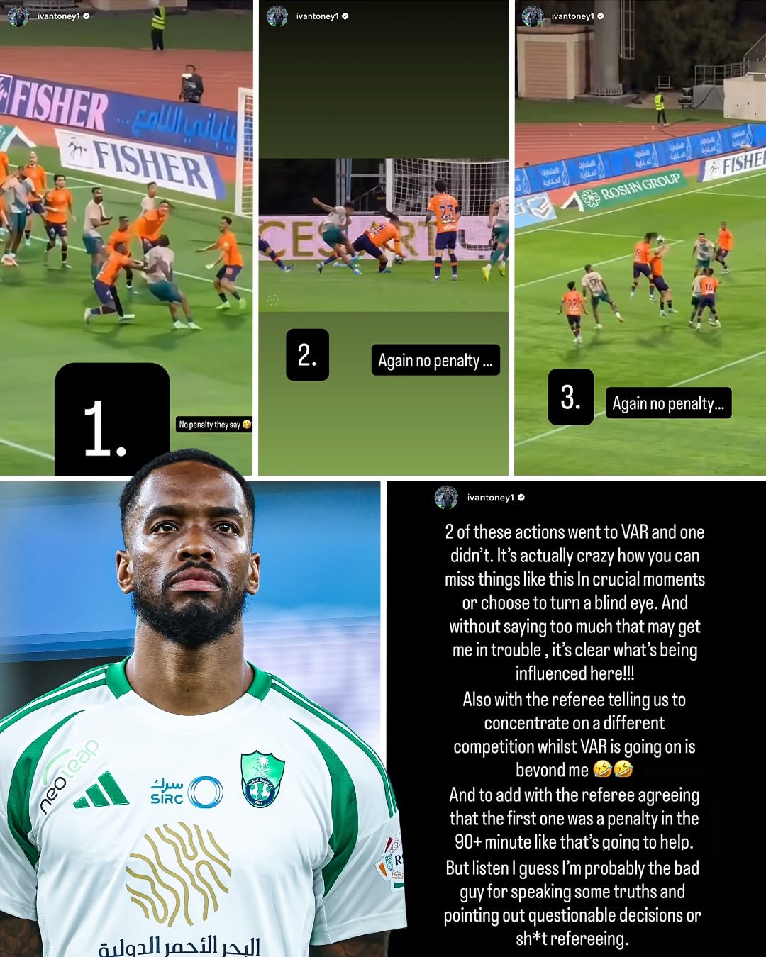 On social media, Toney continued to post videos of the controversial incidents, suggesting external influence and criticizing the referees' belated acknowledgment of errors. "It's crazy to miss such situations at a crucial time, or intentionally ignore them", he wrote. "The referee even told us to focus on another competition while VAR was checking, I just can't understand it. Perhaps I'll become the bad guy for speaking the truth and pointing out suspicious decisions or terrible refereeing".